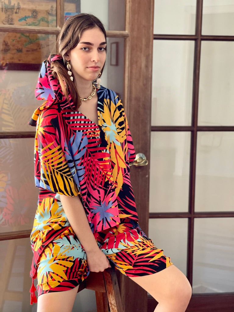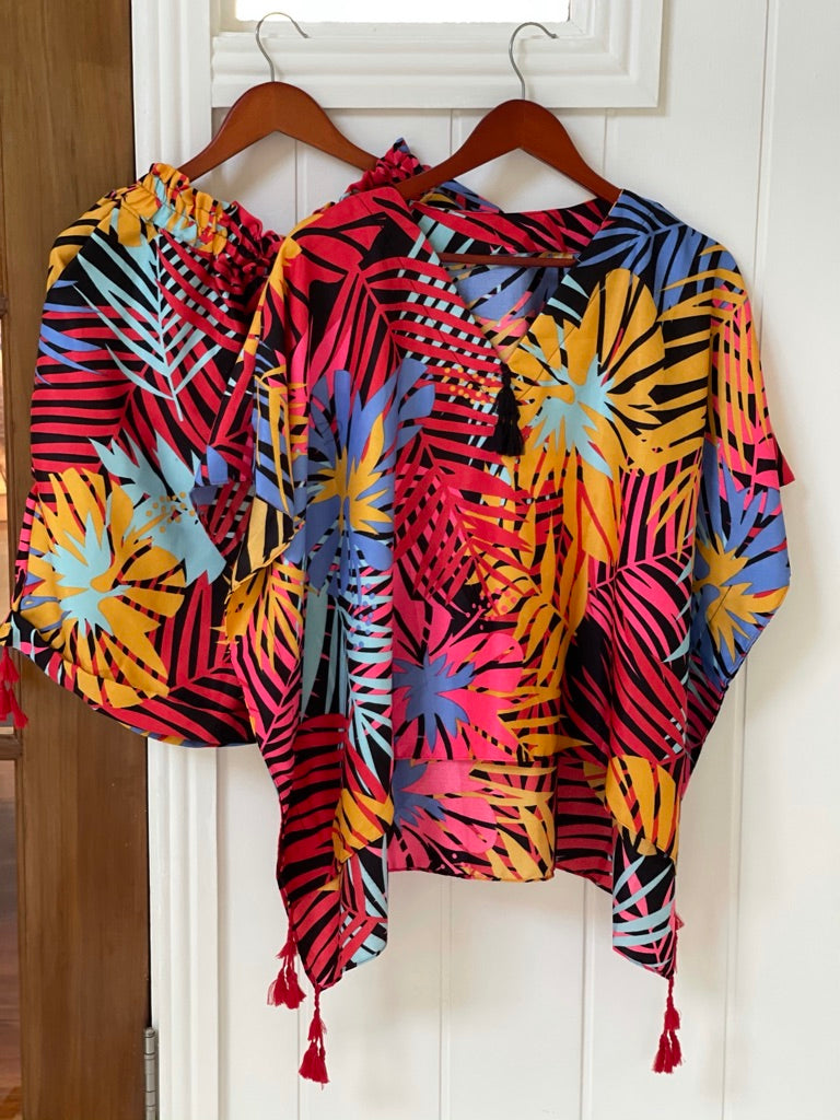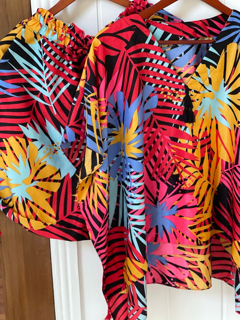 Beautiful and comfortable two piece set, includes shorts and kimono, perfect for a night out or hanging with a friend.