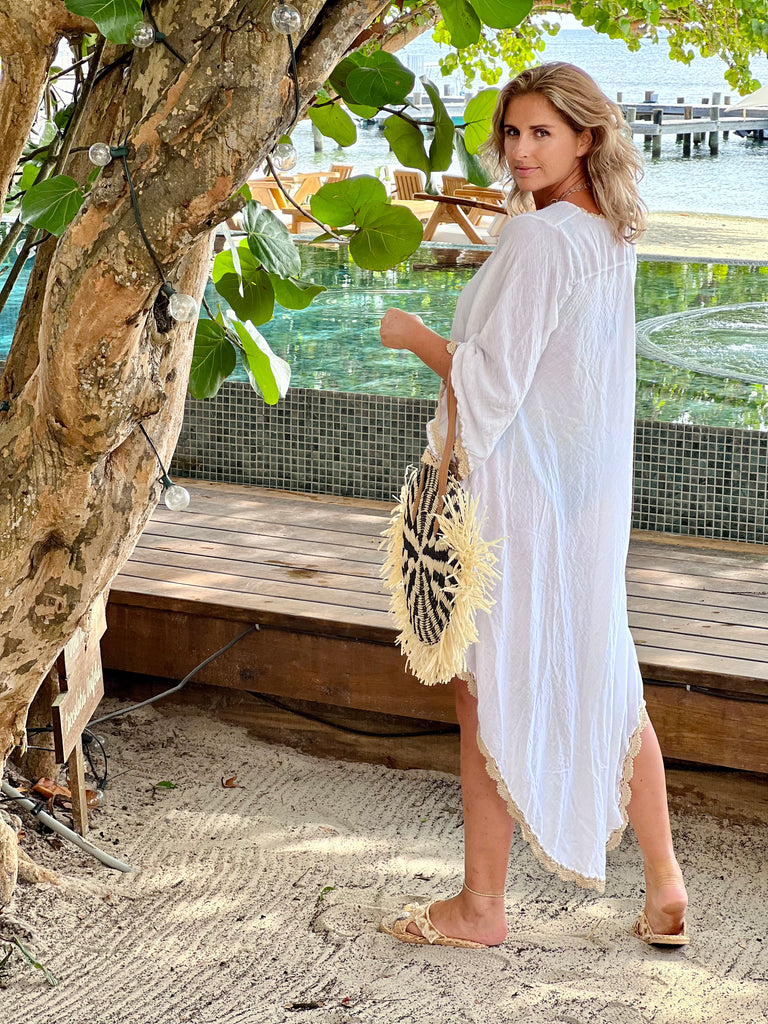 There are bags... And then there's this one. Artisanal, 100% handwoven dried seagrass, fully lined with cotton fabric. Bohemian with just the right touch of sophistication with a handwoven accessory that will take any outfit to the next level.