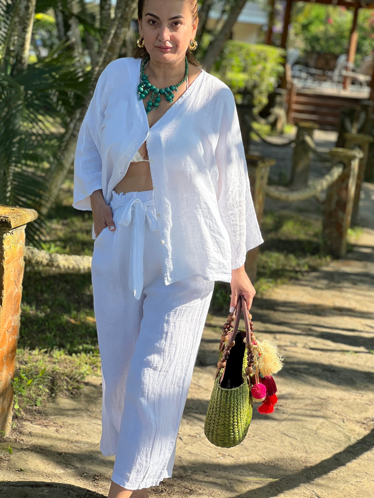 An easy to wear 2pc piece set, crafted in soft & delicate linen, perfect for all your summer needs.