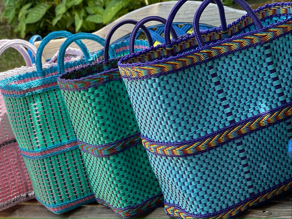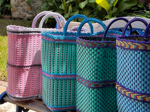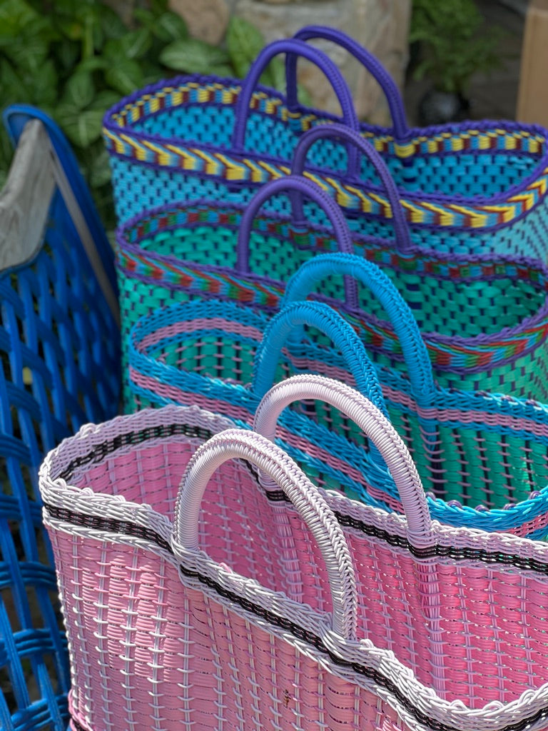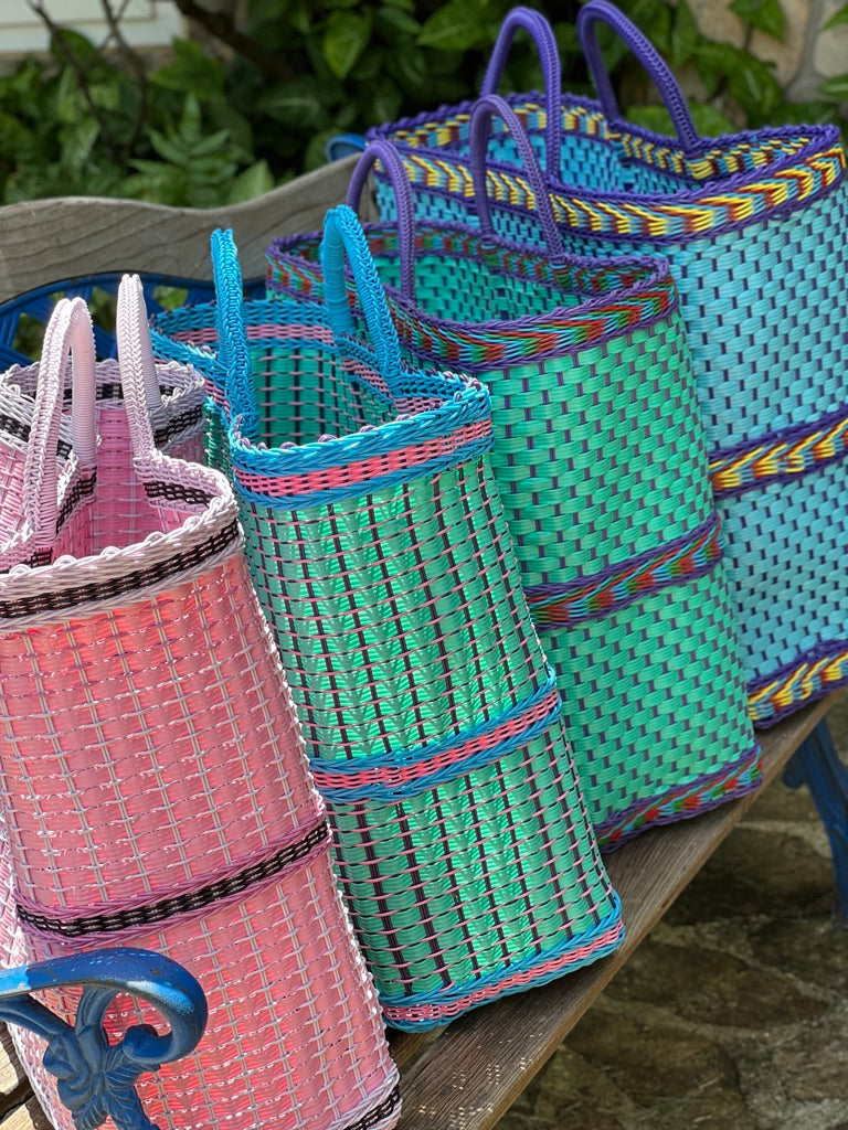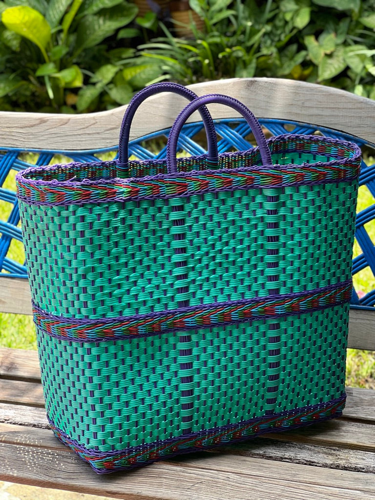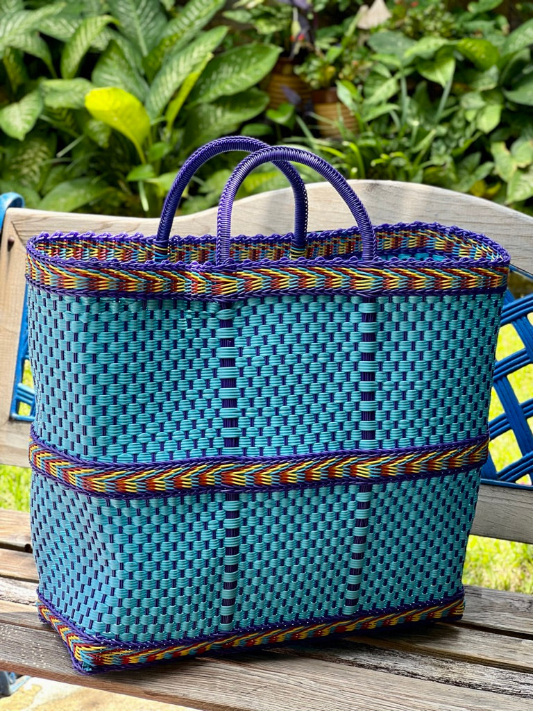 From it's rectangular shape, easy to use handles, handwoven style, to its vibrant colors,  this piece is truly an original.