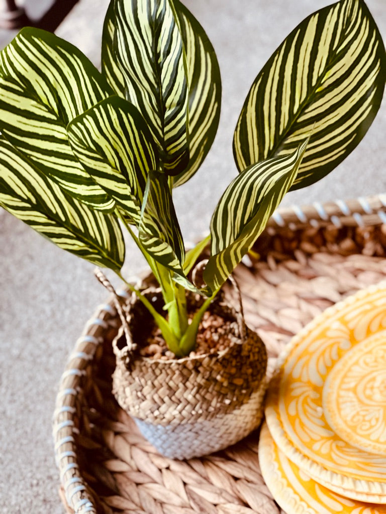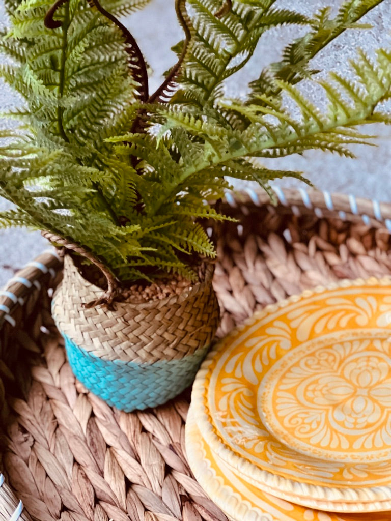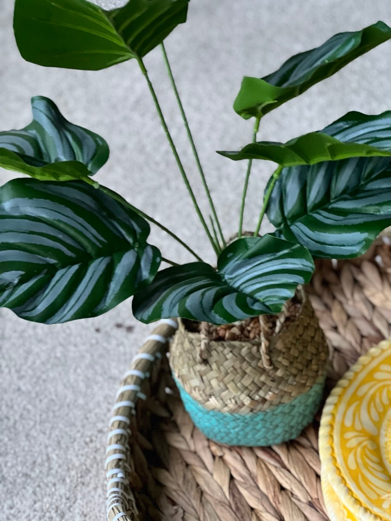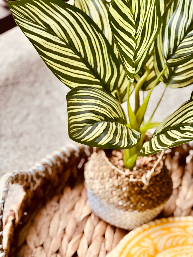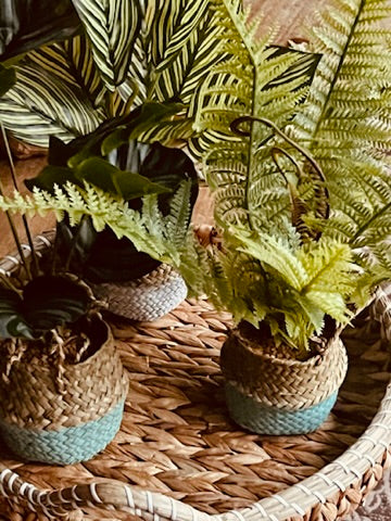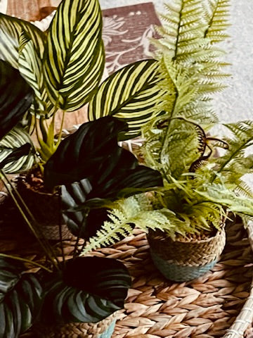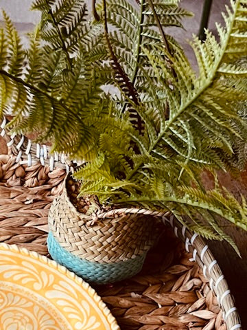 WOVEN BASKET WITH ARTIFICIAL GREENERY