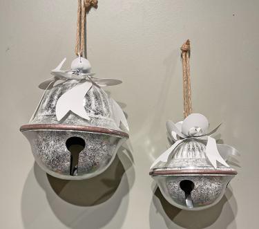 2PC SILVER & WHITE BOW JINGLE BELL SET