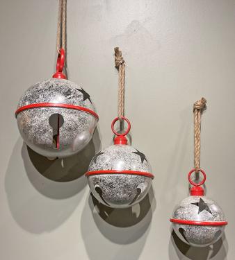 3PC SILVER STARS JINGLE BELL SET
