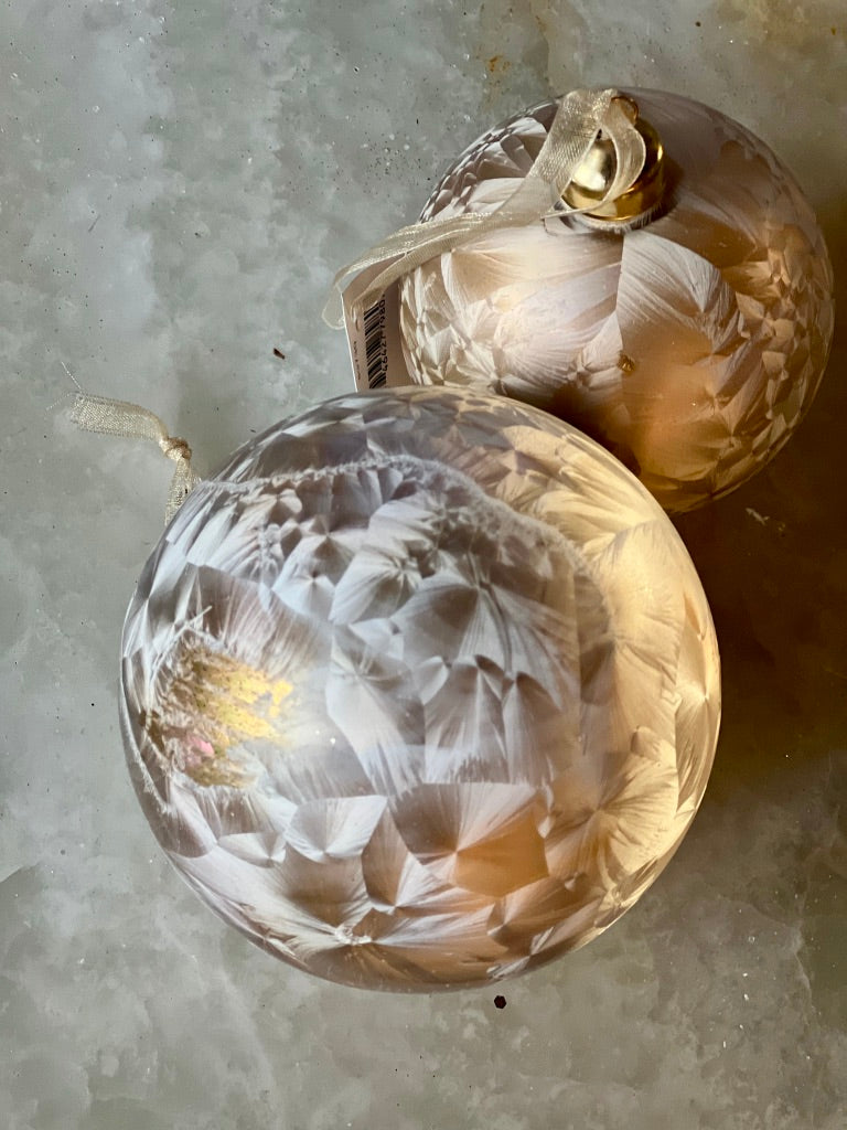 2PC GOLD FEATHERED ORNAMENT SET