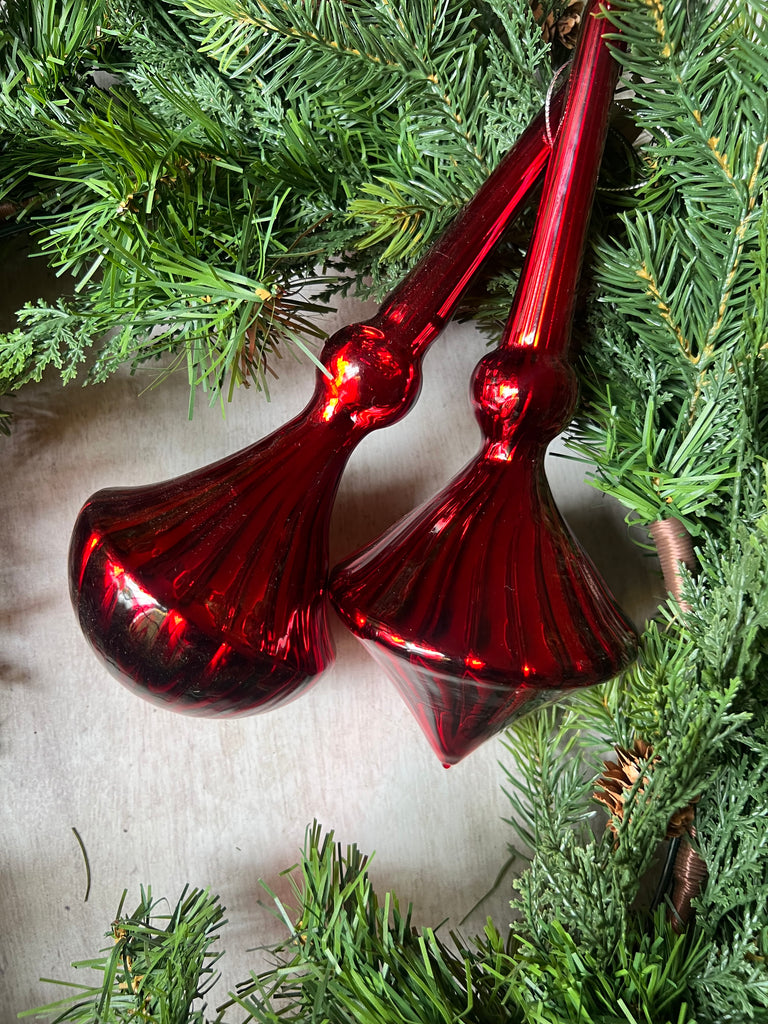 2PC GLASS RED FINIAL ORNAMENT SET