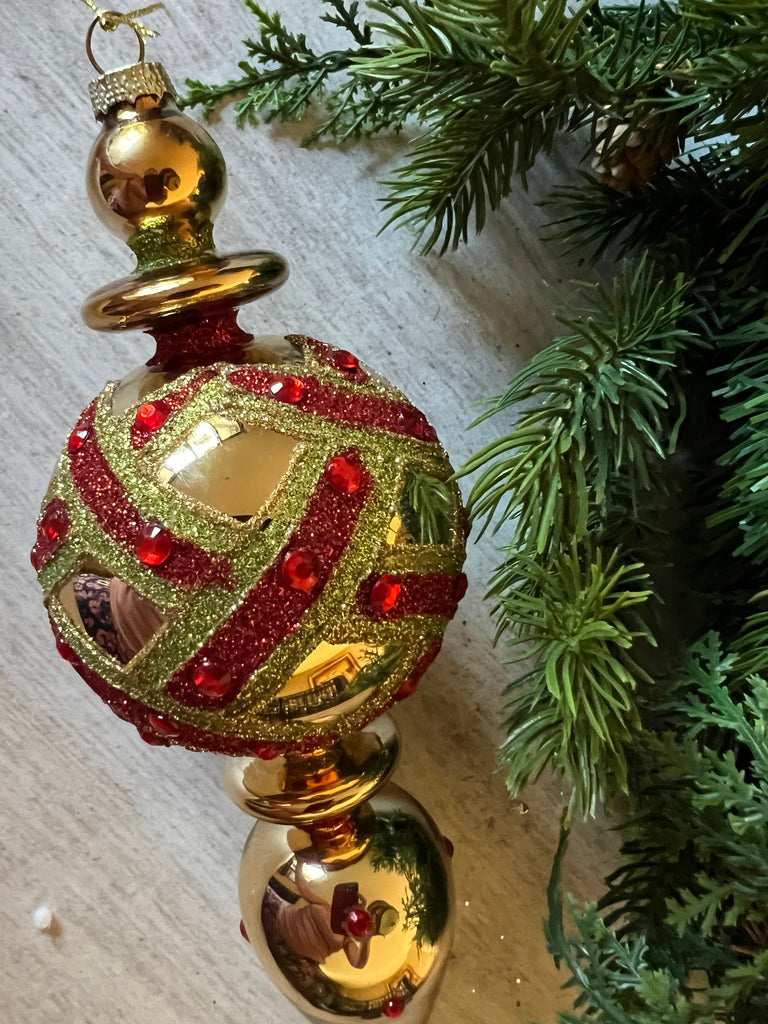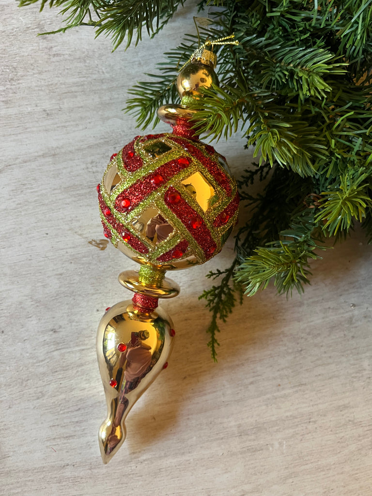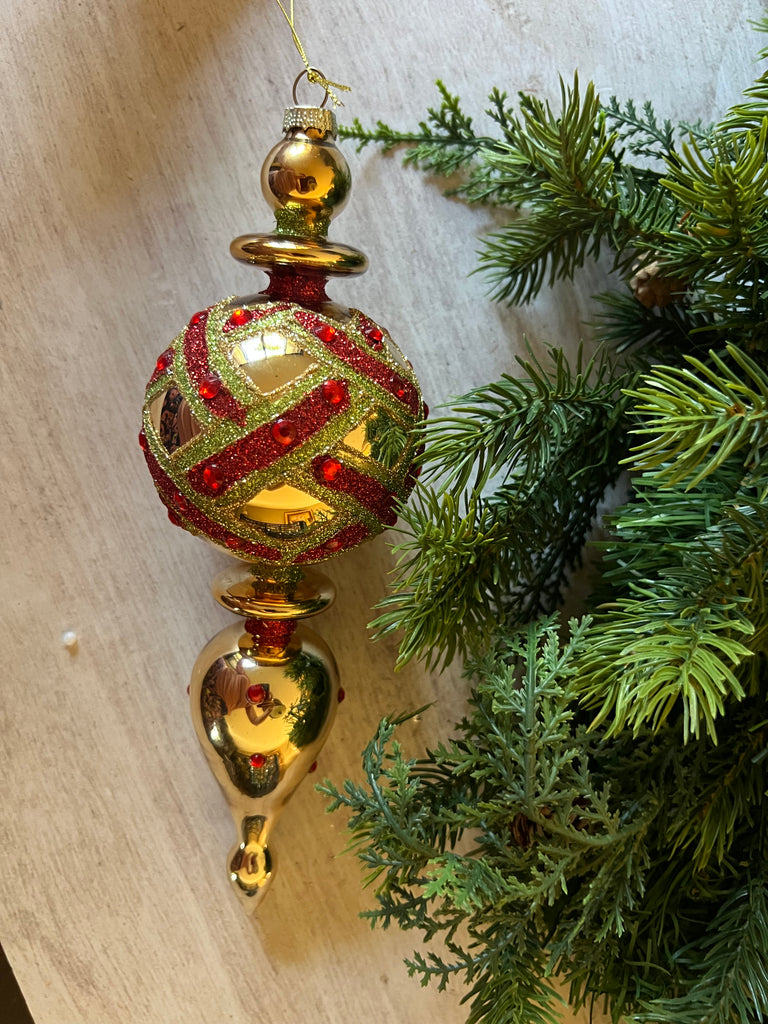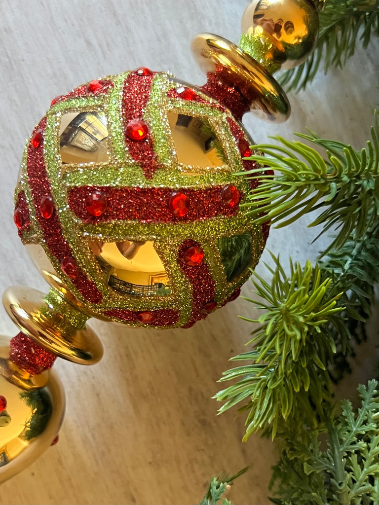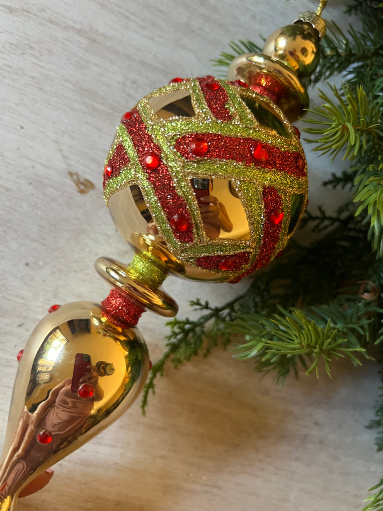 2PC GOLD, RED & GREEN ORNAMENT SET