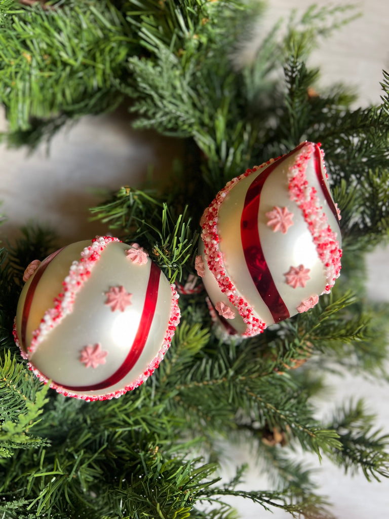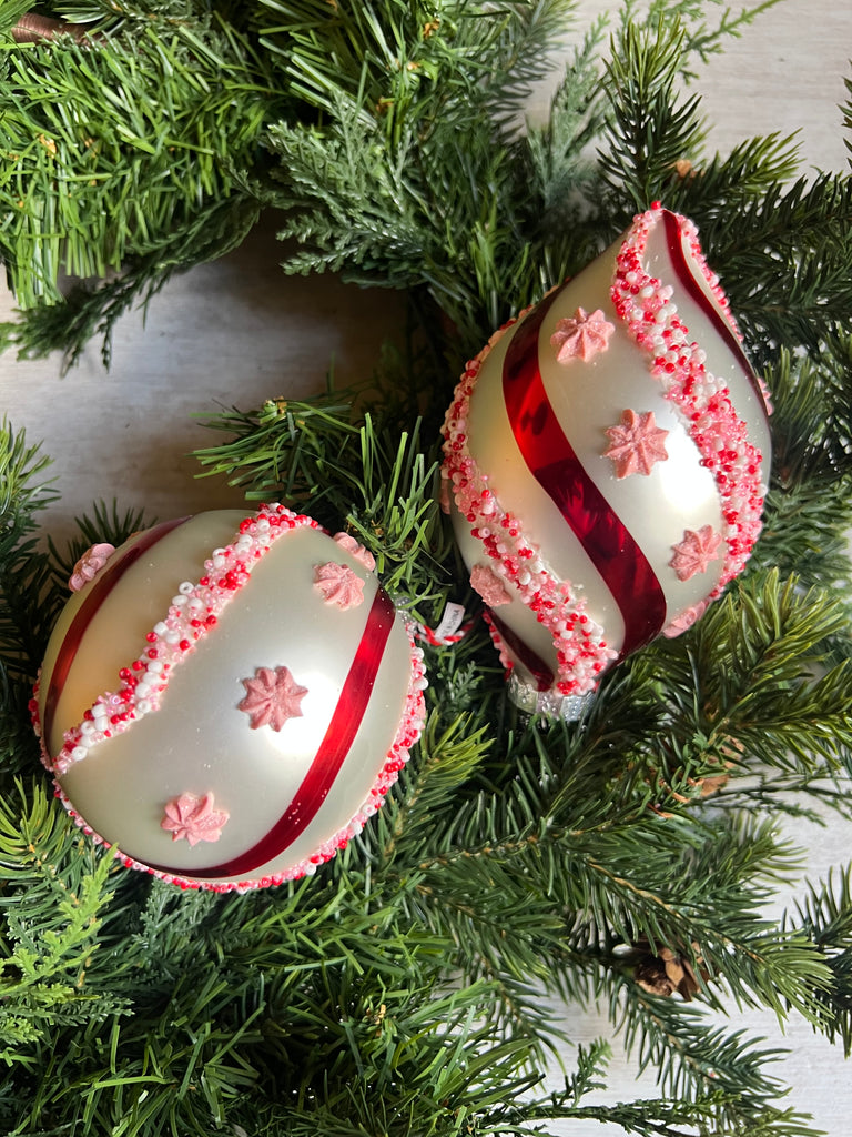 2PC RED & WHITE BEADED PEPPERMINT ORNAMENT SET