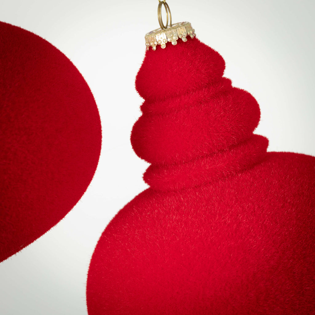 These oversized festive ornaments add a pop of color to your holiday decor. Flocked with red velvet, they are sure to catch the eye when hanging on your Christmas tree. Simple yet cheerful, this timeless ornament brings a cozy, classic vibe to a tree, front door, or mantel. Just hang it securely and step back to admire the cheerful red dot of color that completes your seasonal display. These ornaments are oversized and shatterproof.