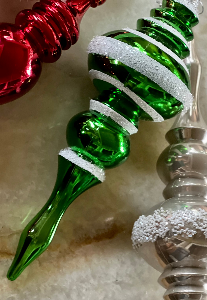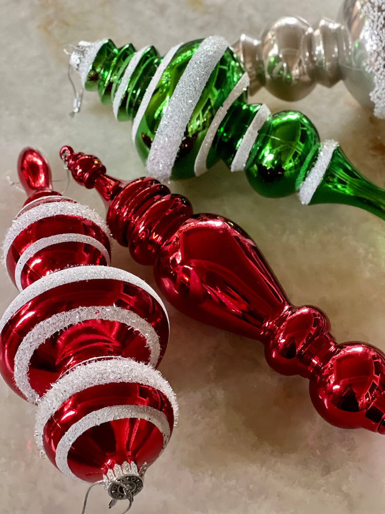 2PC GREEN BEADED DOUBLE BALL FINIAL ORNAMENT