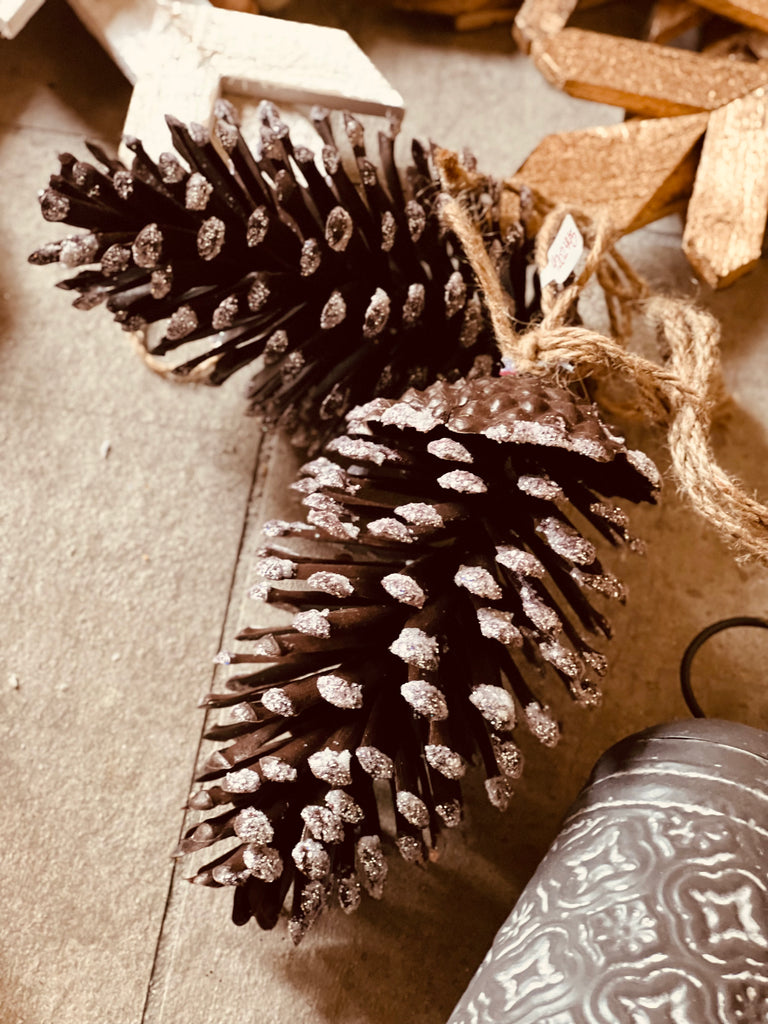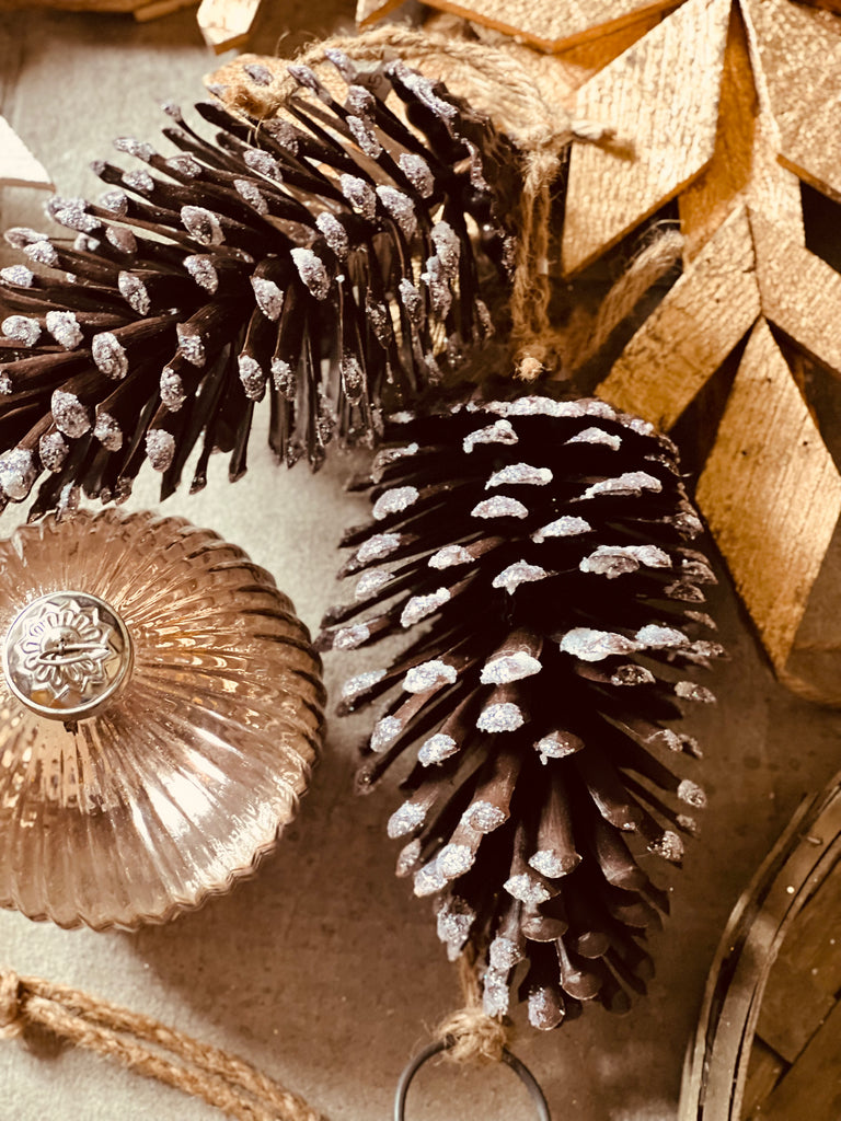 GLITTERED PINECONE ORNAMENTS