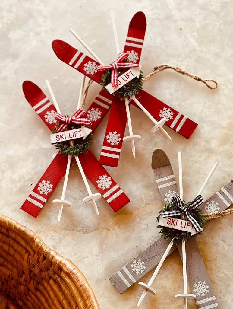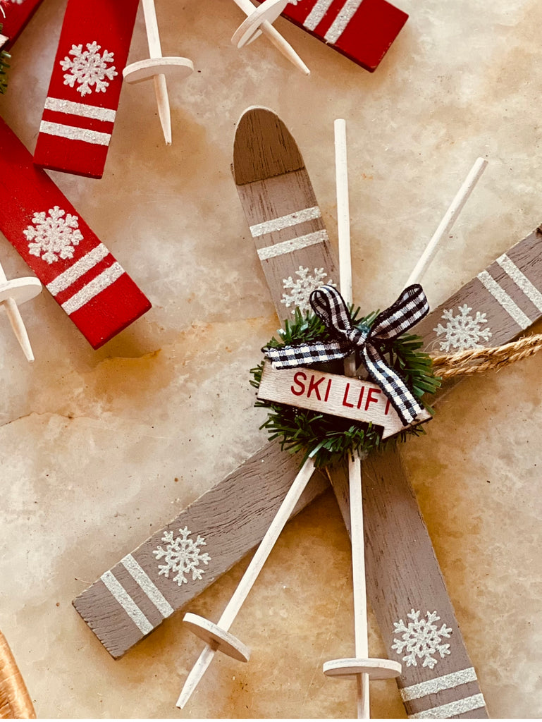 4PC WOOD SKI ORNAMENT SET