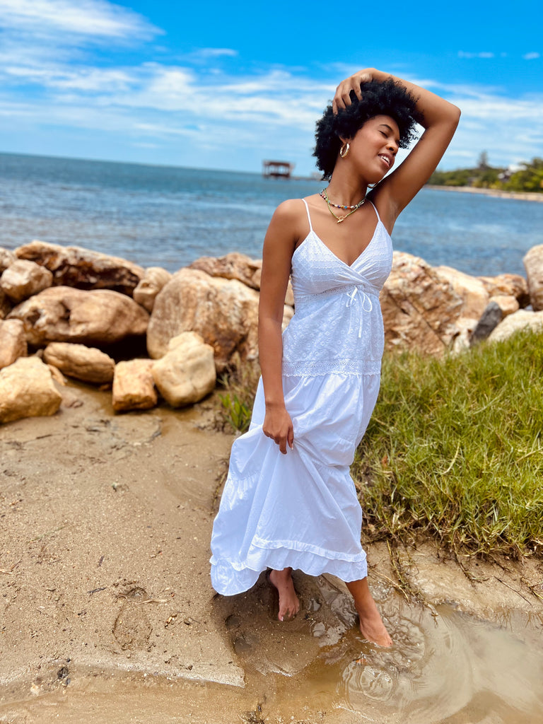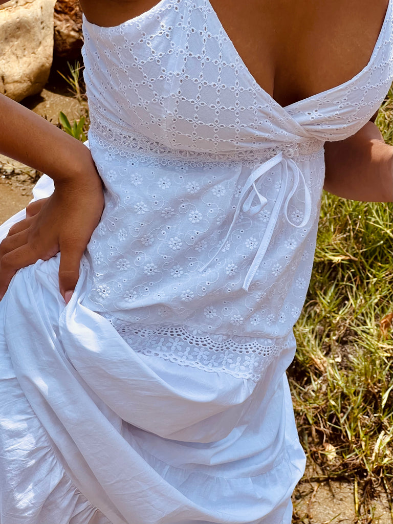 Styled in a delightful organic eyelet cotton, this is, no doubt, the perfect addition to your closet.