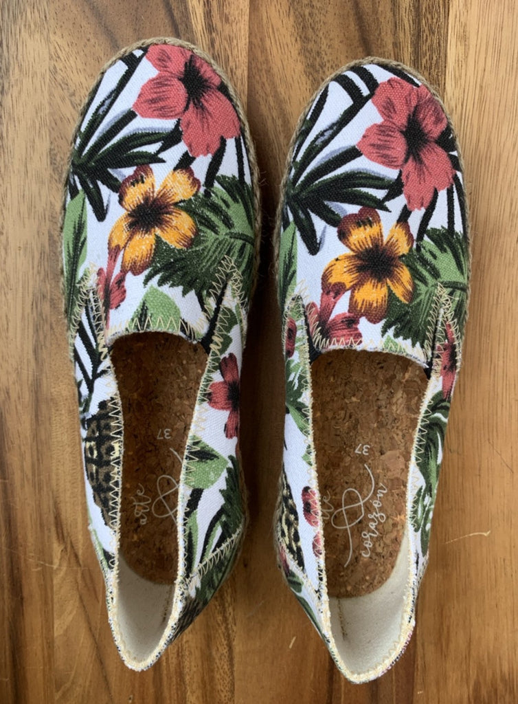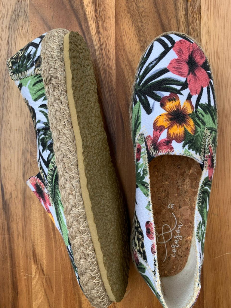 Delight in our EXTREMELY comfortable, eco friendly espadrilles, boasting vibrant colors and patterns, a natural jute trim and cork insole.