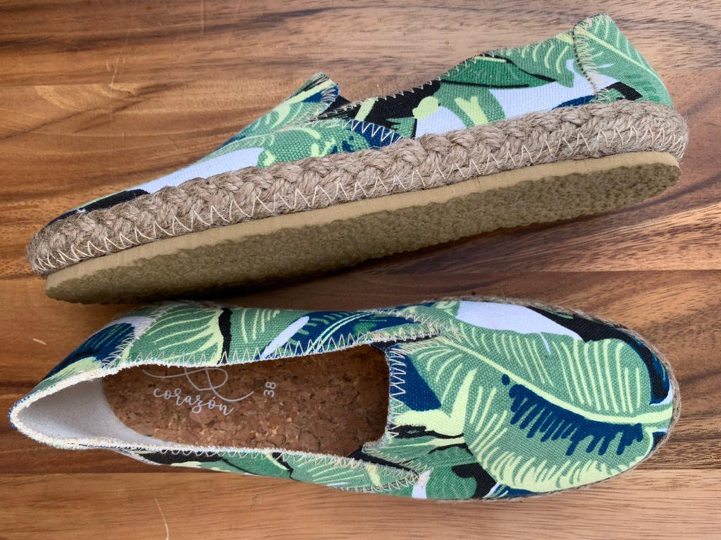Delight in our EXTREMELY comfortable, eco friendly espadrilles, boasting vibrant colors and patterns, a natural jute trim and cork insole.