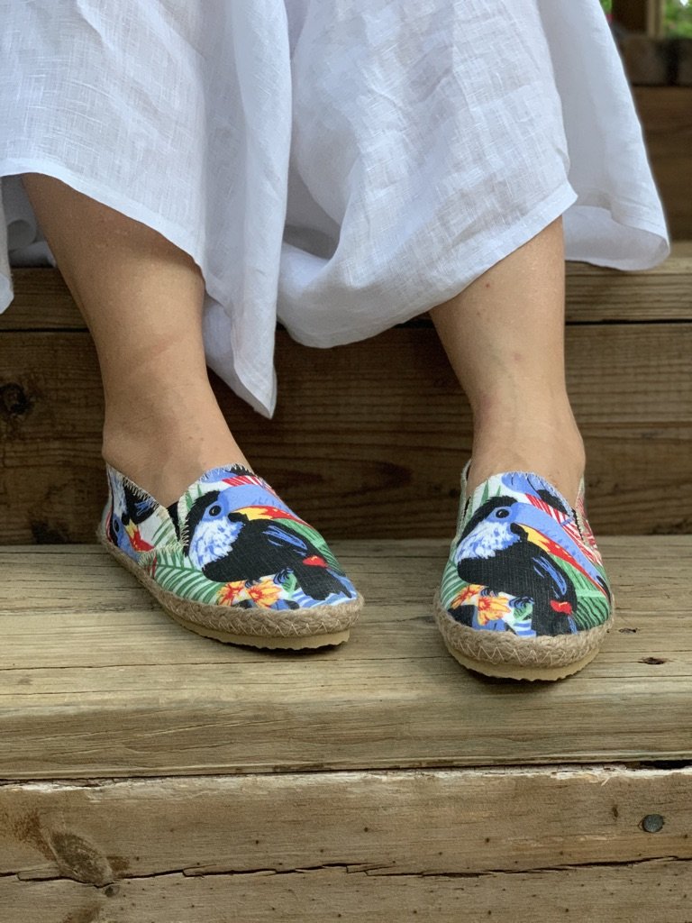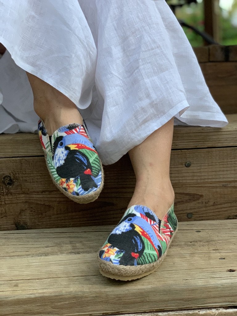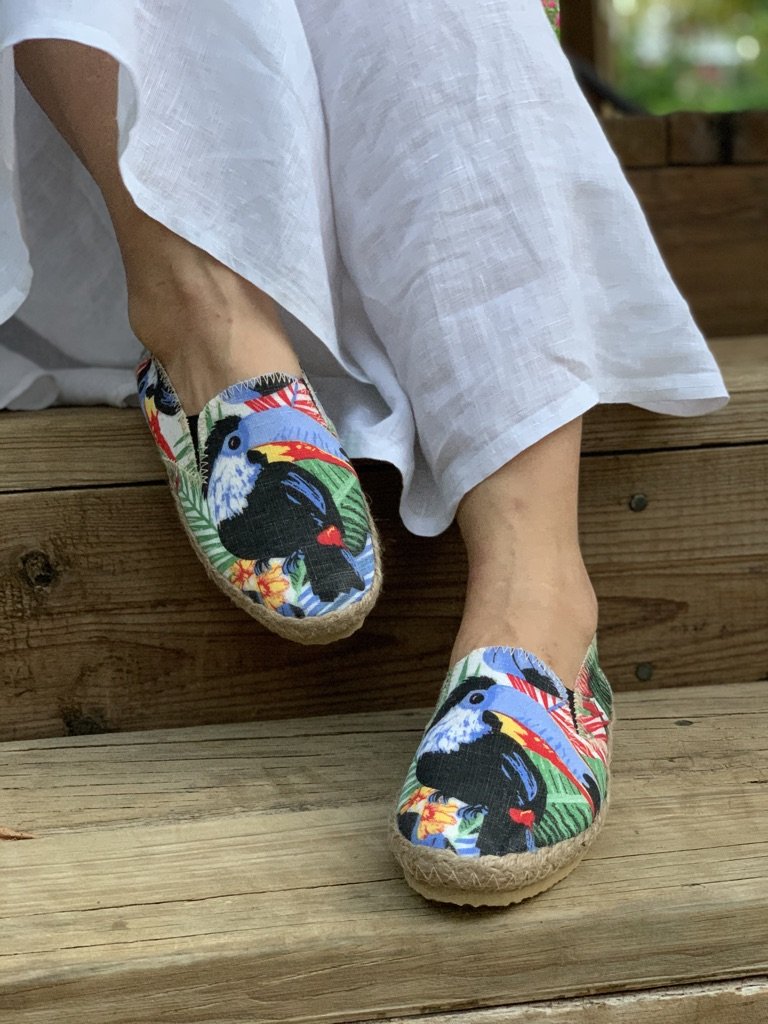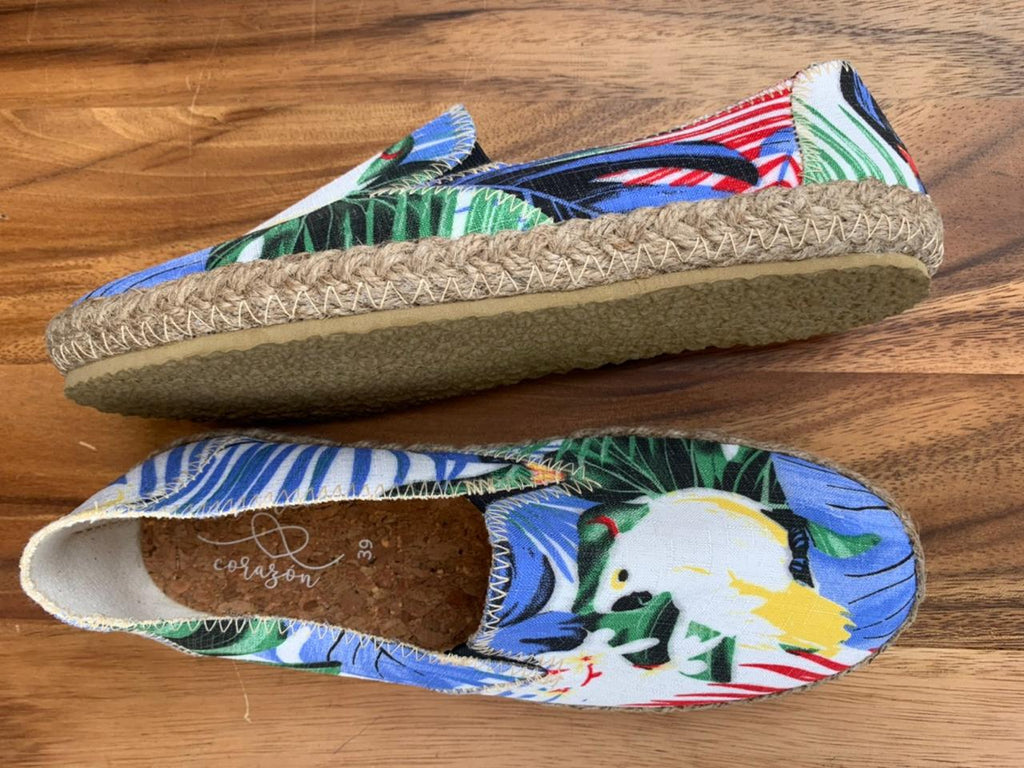 Delight in our EXTREMELY comfortable, eco friendly espadrilles, boasting vibrant colors and patterns, a natural jute trim and cork insole.
