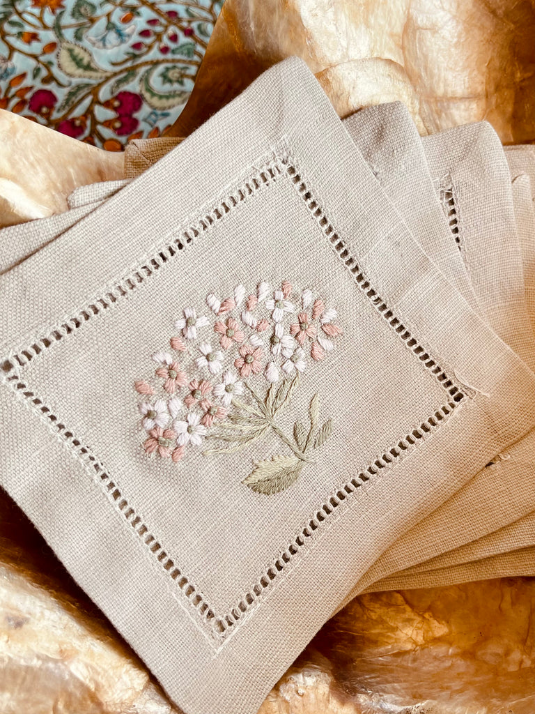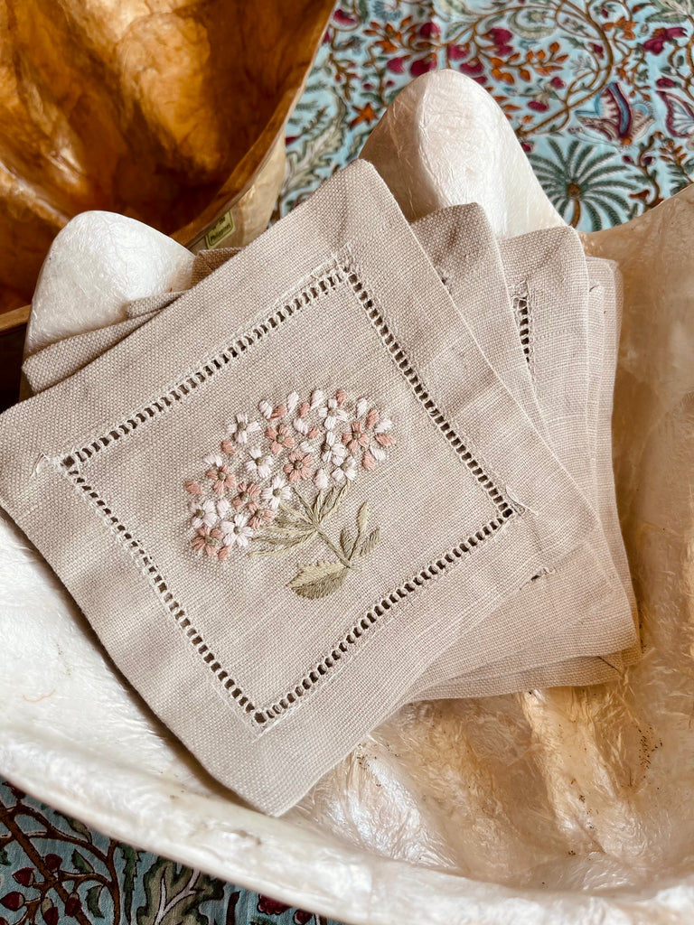 DORIS HAND EMBROIDERED LINEN COASTERS