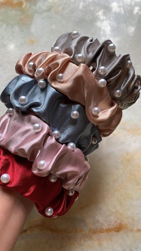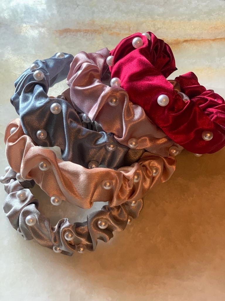 Luscious, silky, pearl trimmed headband, the perfect accessory.