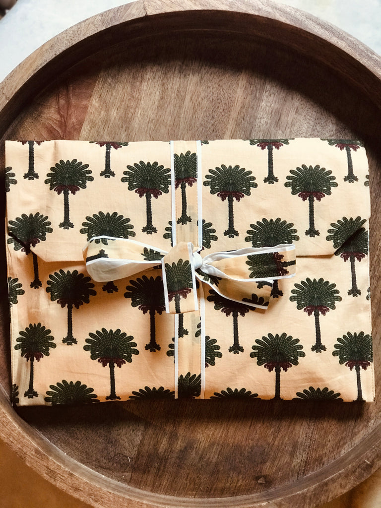The long pants & long sleeve shirts  are both crafted with 100% Indian cotton using a hand crafted technique called "block printing" and only natural dyes. They come in their own multipurpose pouch with same print.