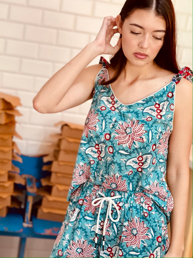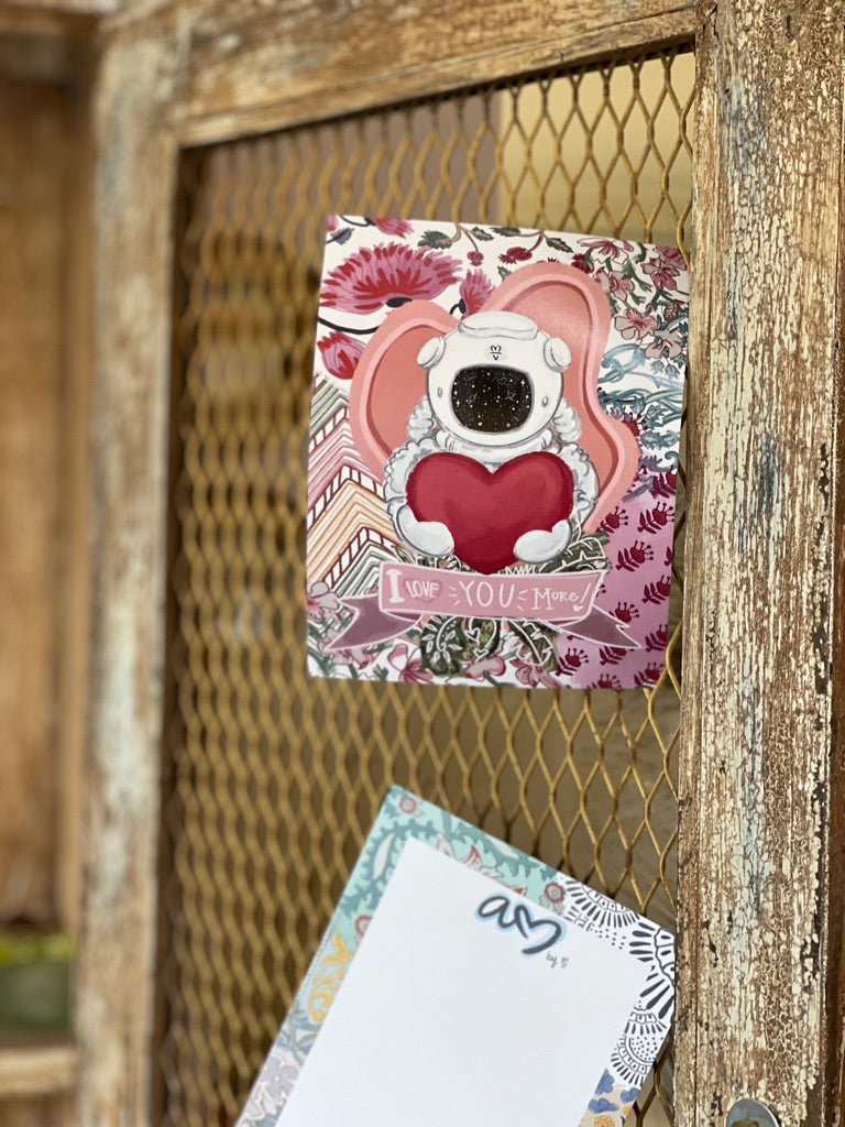 With your purchase, you will receive a limited edition notecard, created by local artist, The Art Bandit, complete with a patterned envelope. The artwork is a beautiful compilation of our loungewear collection patterns.