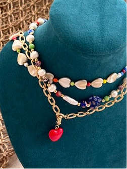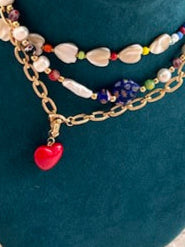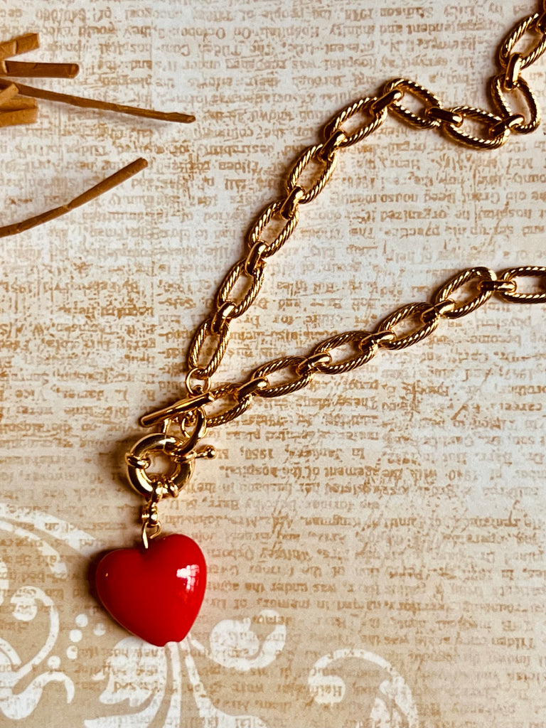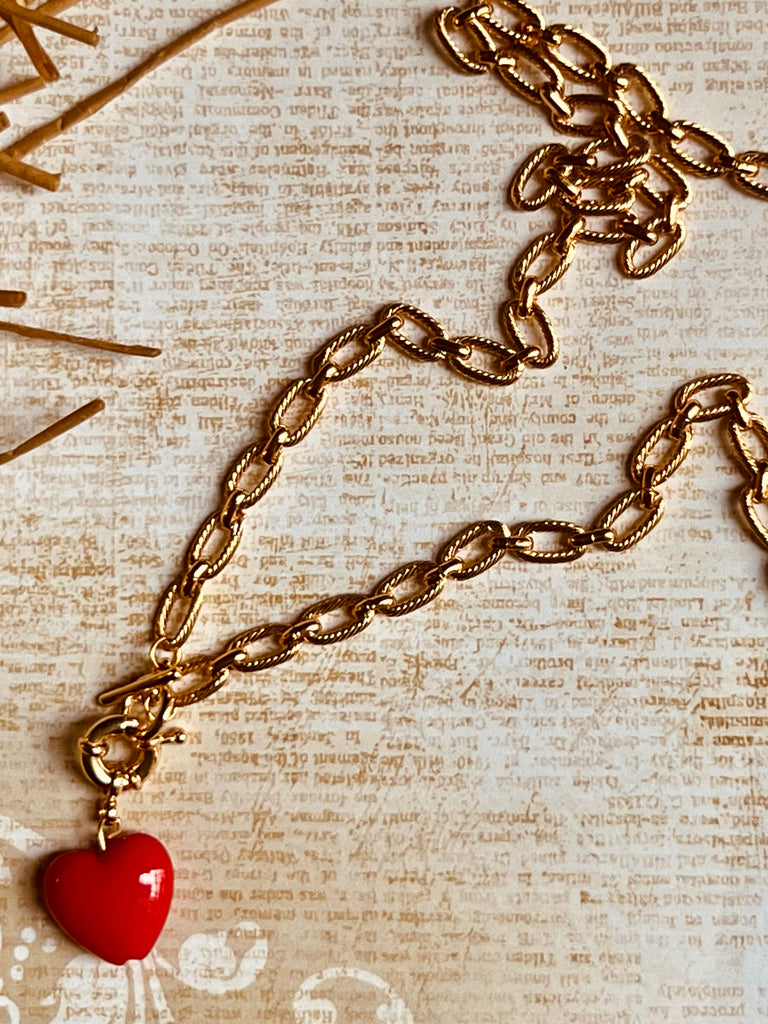 Gold Links & Red Heart Necklace