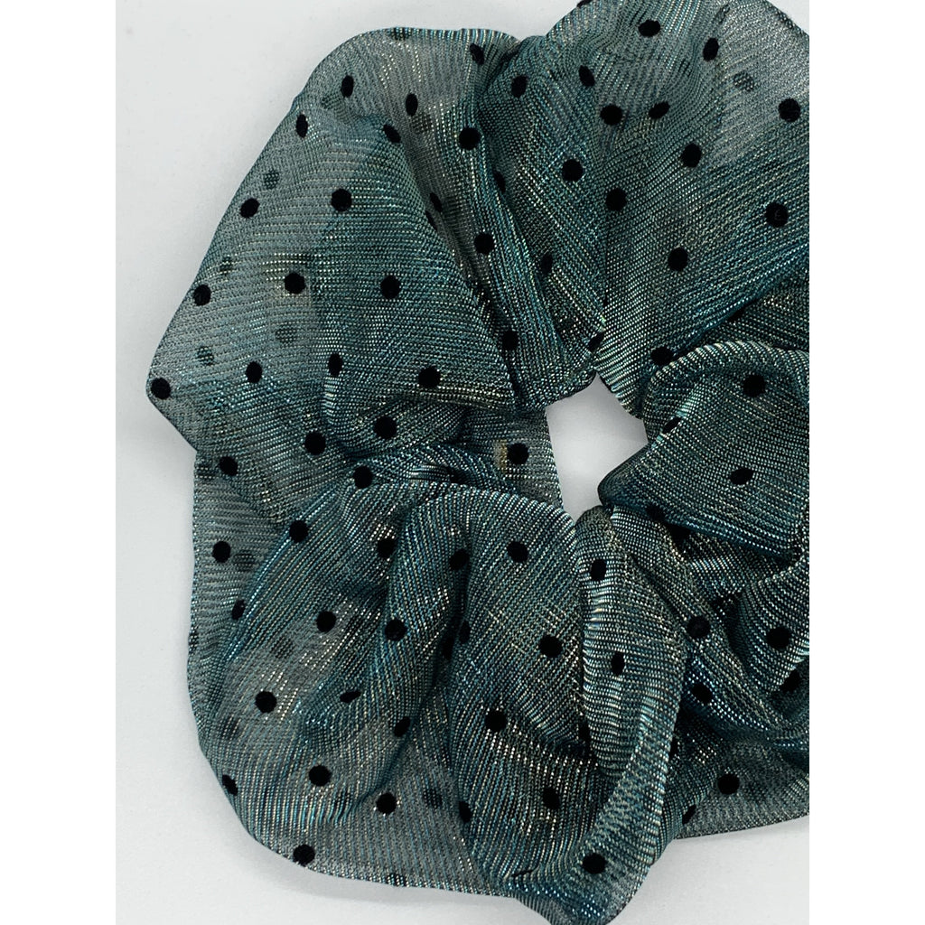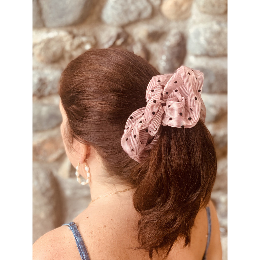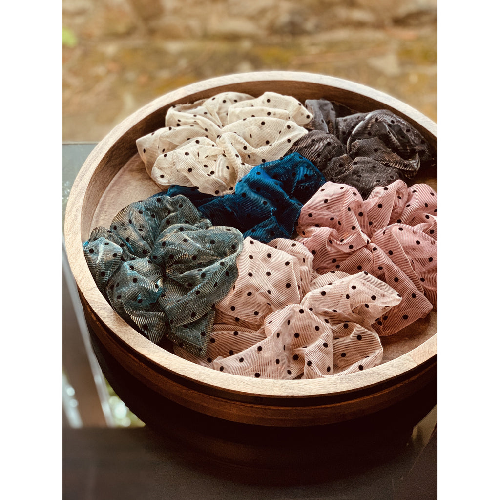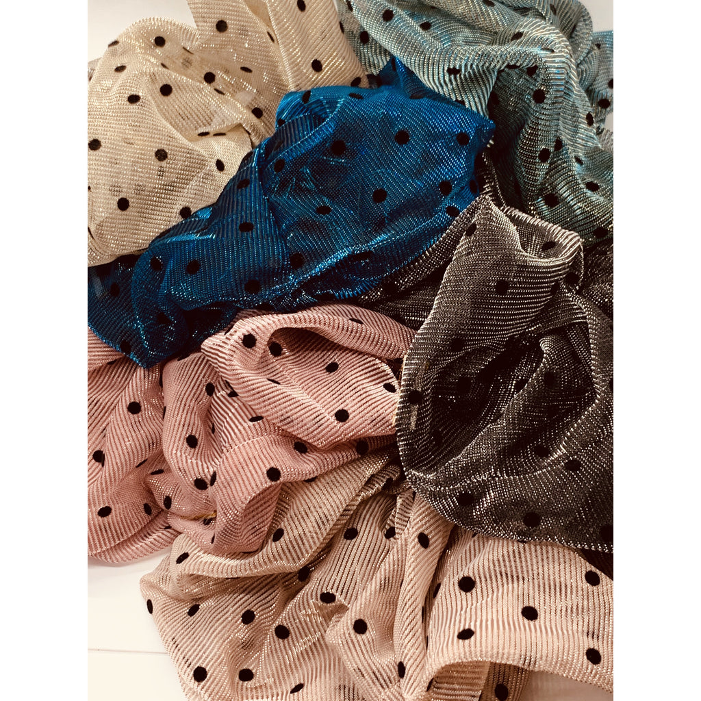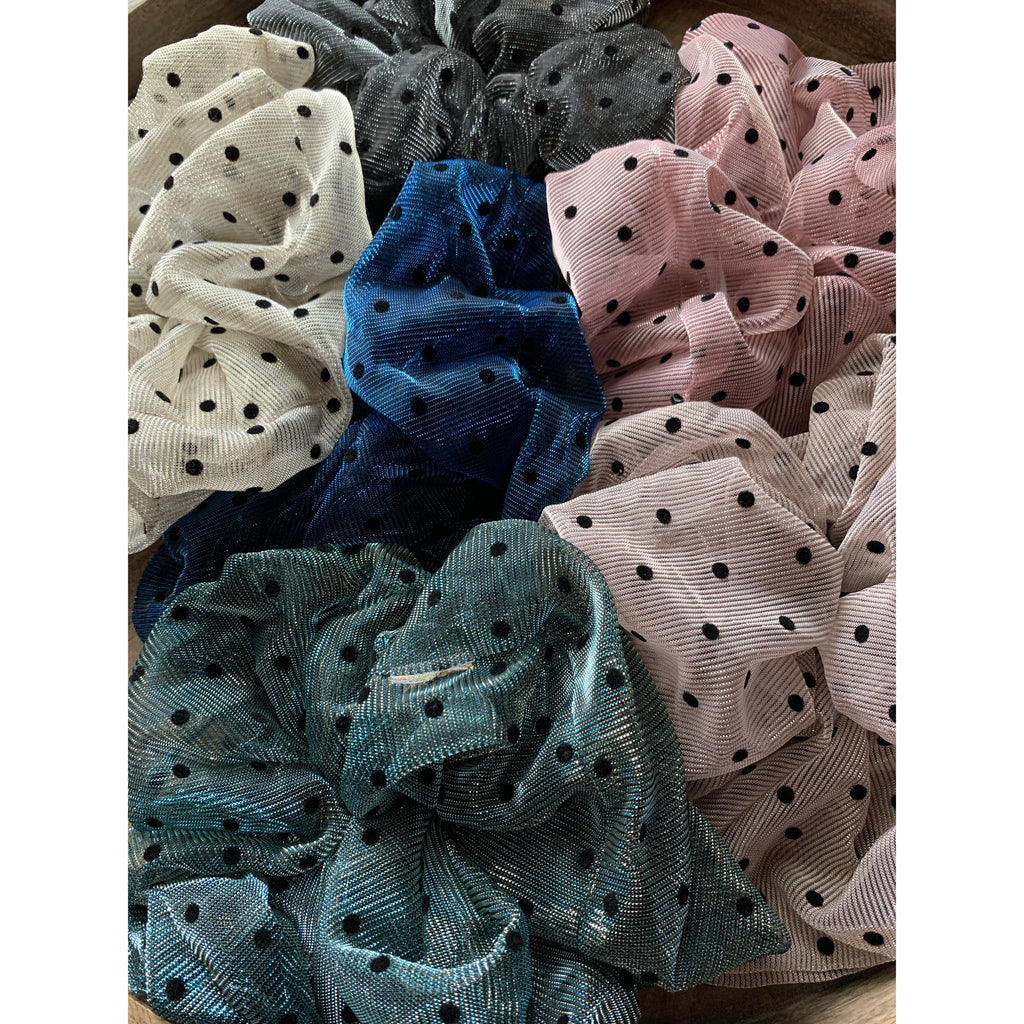Extra large and extra beautiful hair scrunchies, handmade in delicate gentle polka dotted fabric.