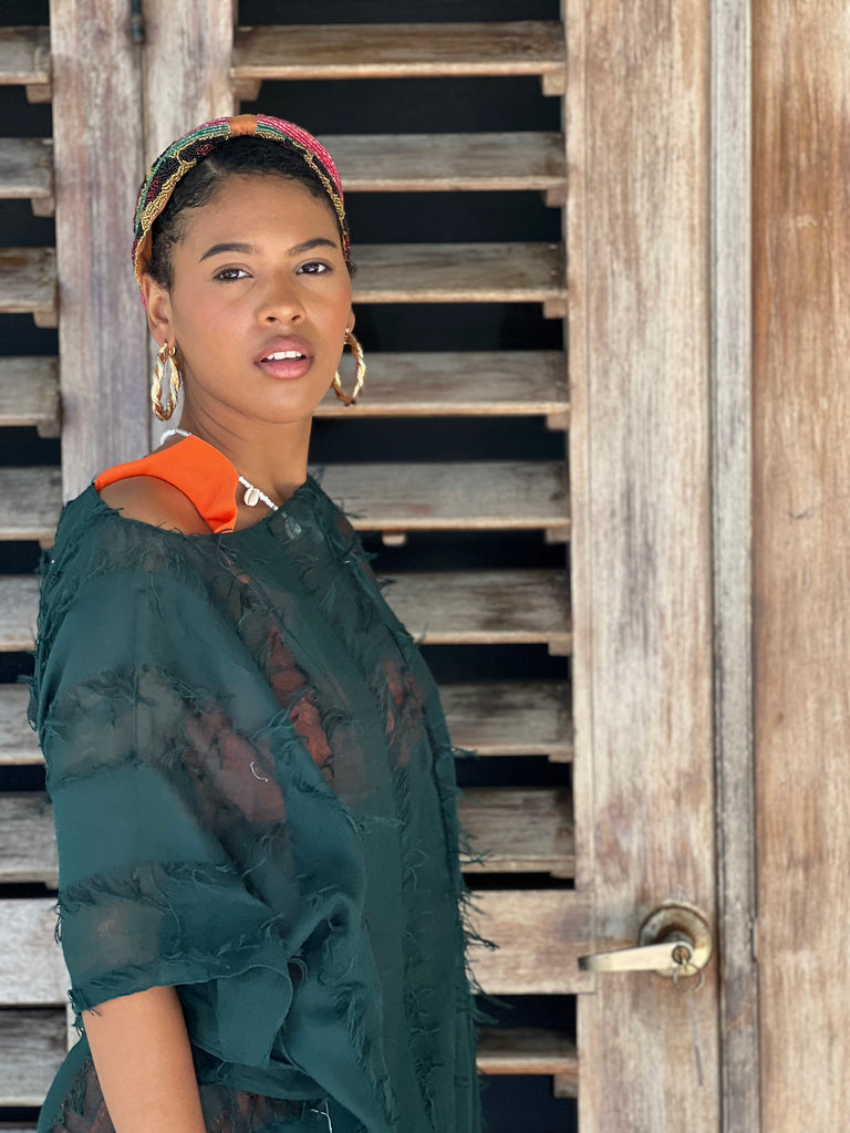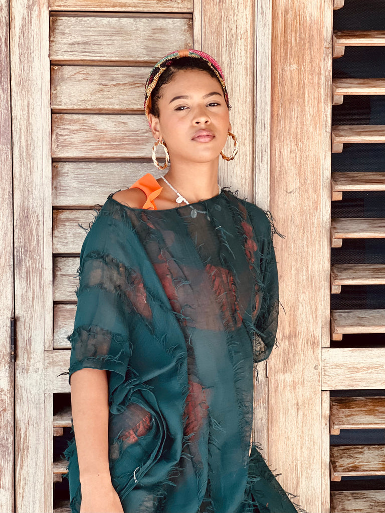 This delicate, one-size fits all,  handmade piece is crafted from 100% cotton & silk blend.