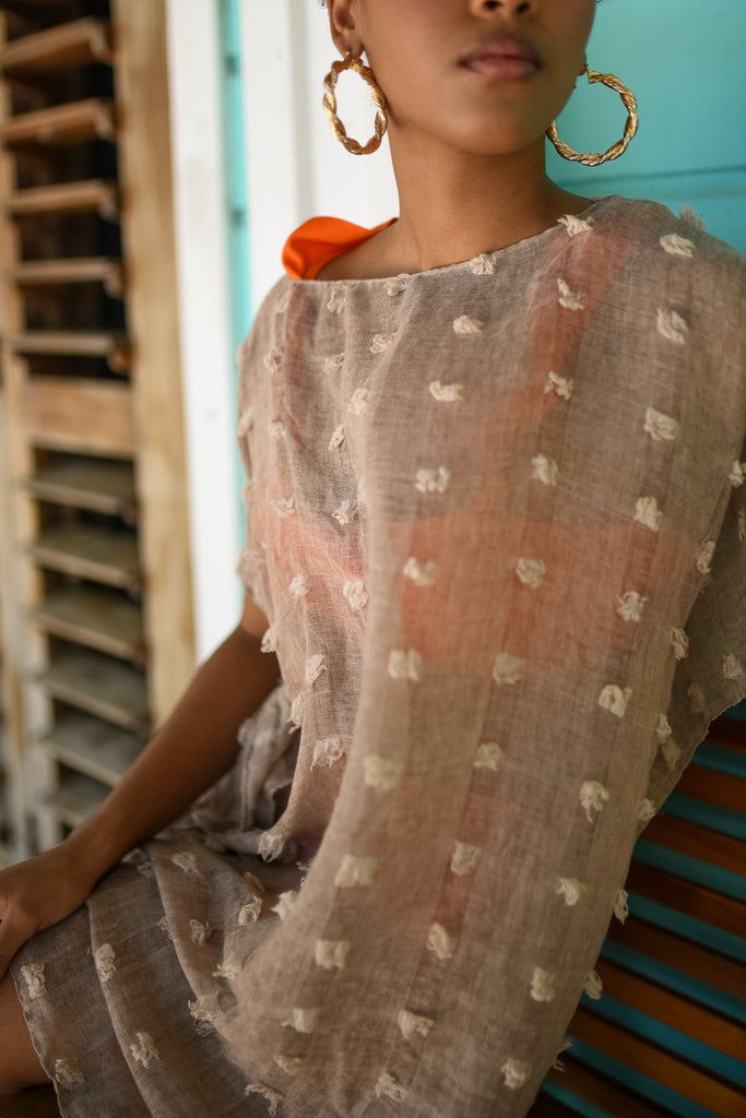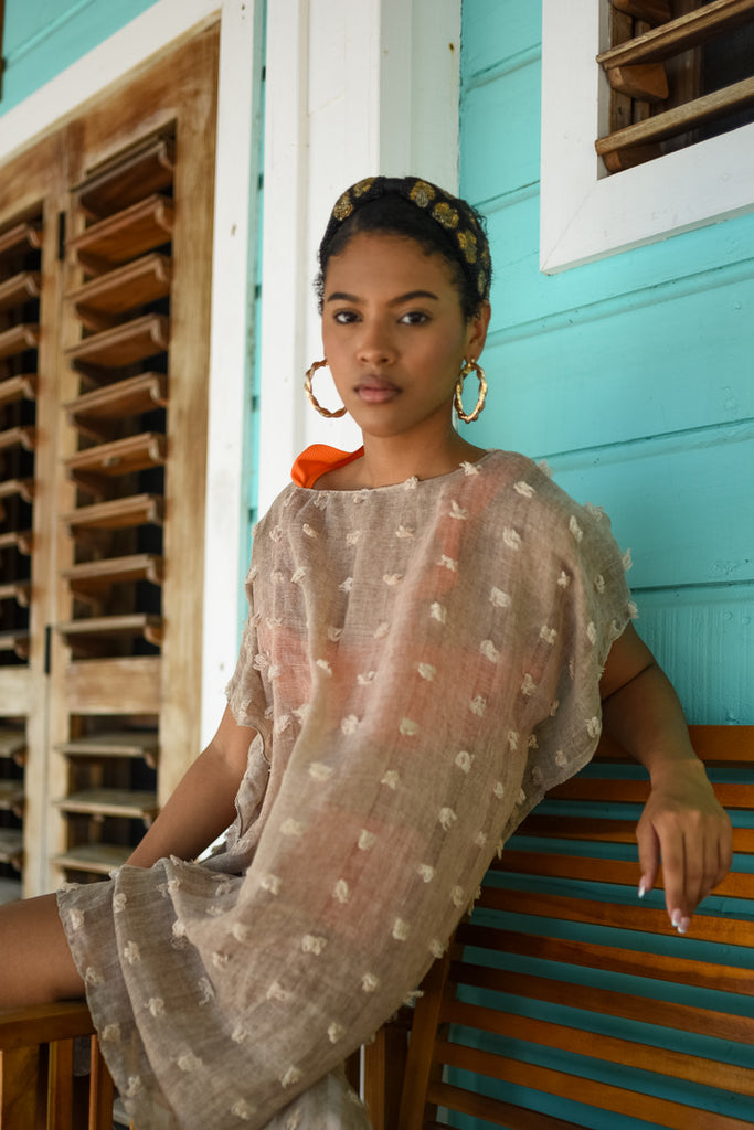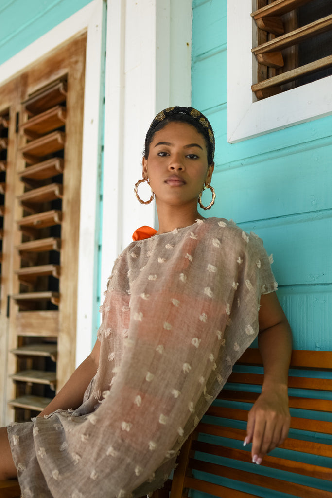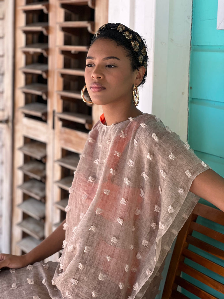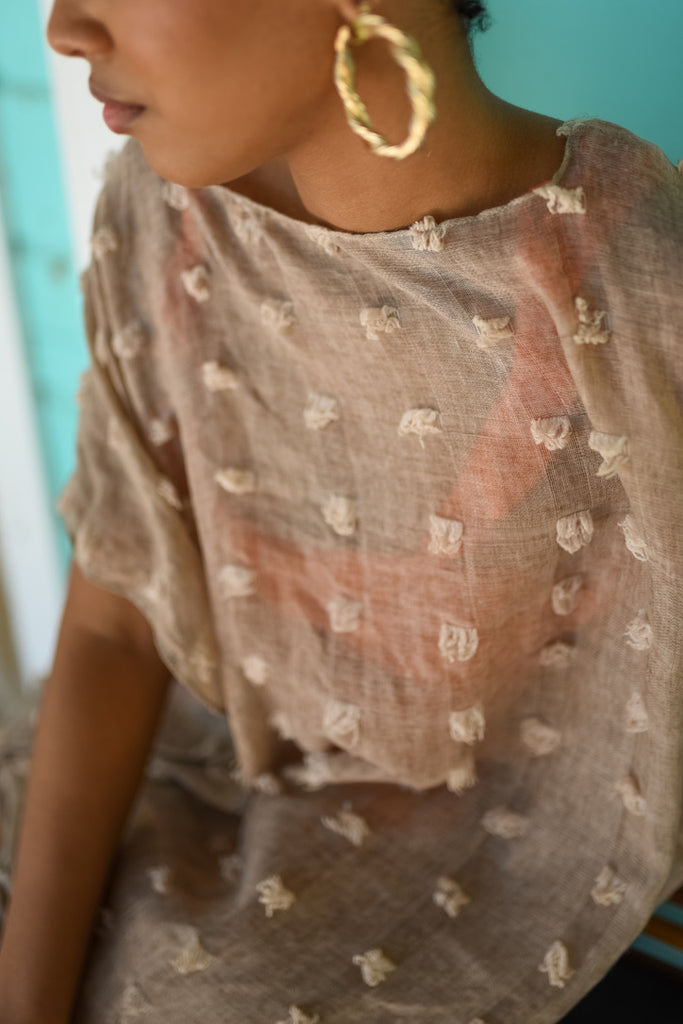 This delicate, one-size fits all,  handmade piece is crafted from 100% cotton & silk blend.