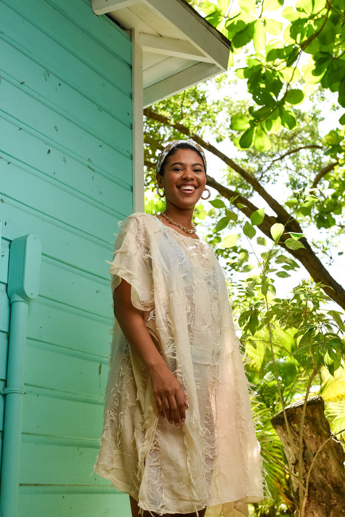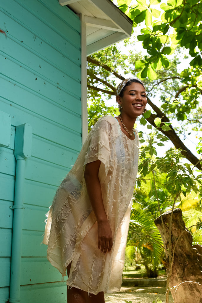 This delicate, one-size fits all,  handmade piece is crafted from 100% cotton & silk blend.