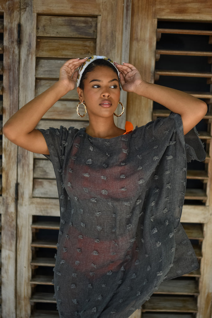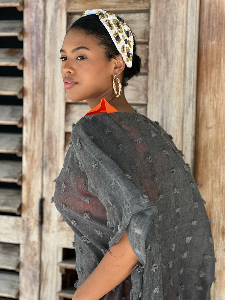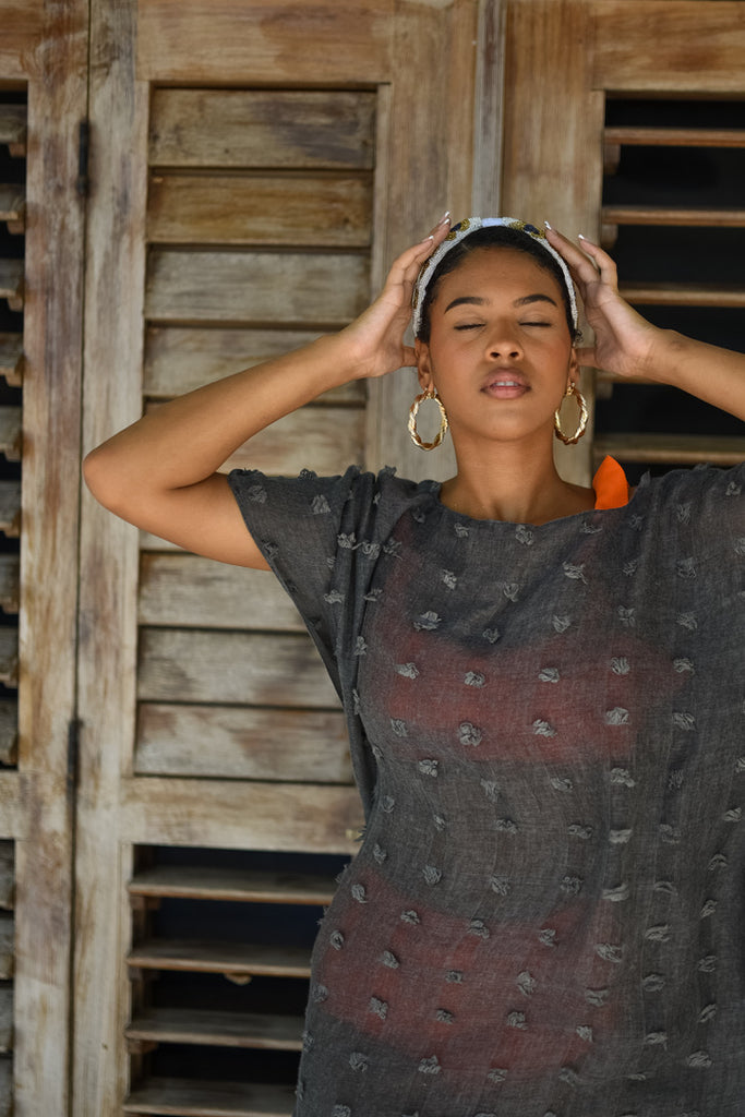 This delicate, one-size fits all,  handmade piece is crafted from 100% cotton & silk blend.