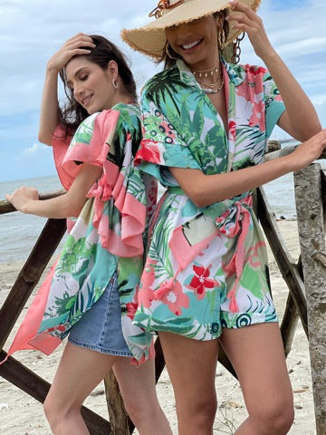 Enjoy our latest collection of unique, vibrant, ruffle sleeve kimonos.