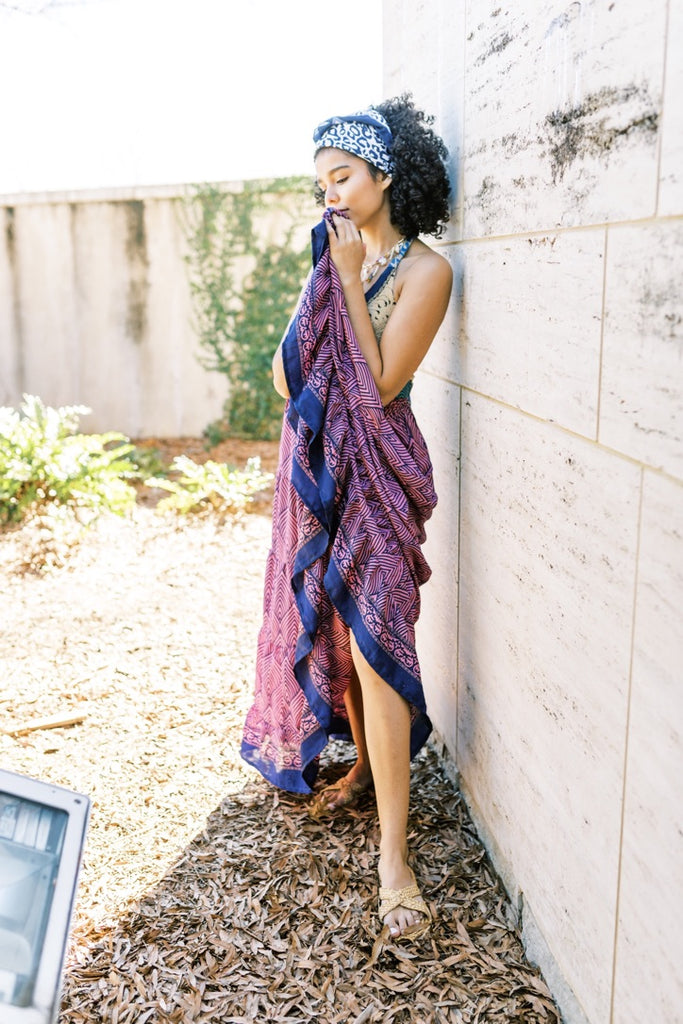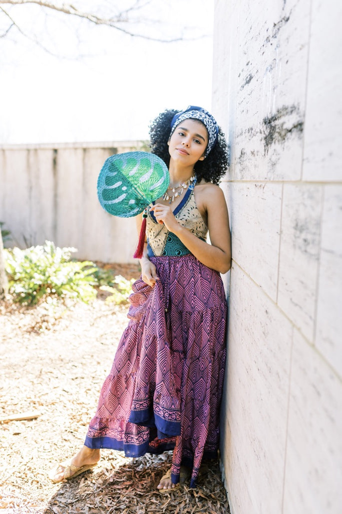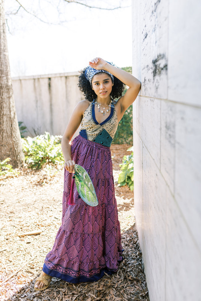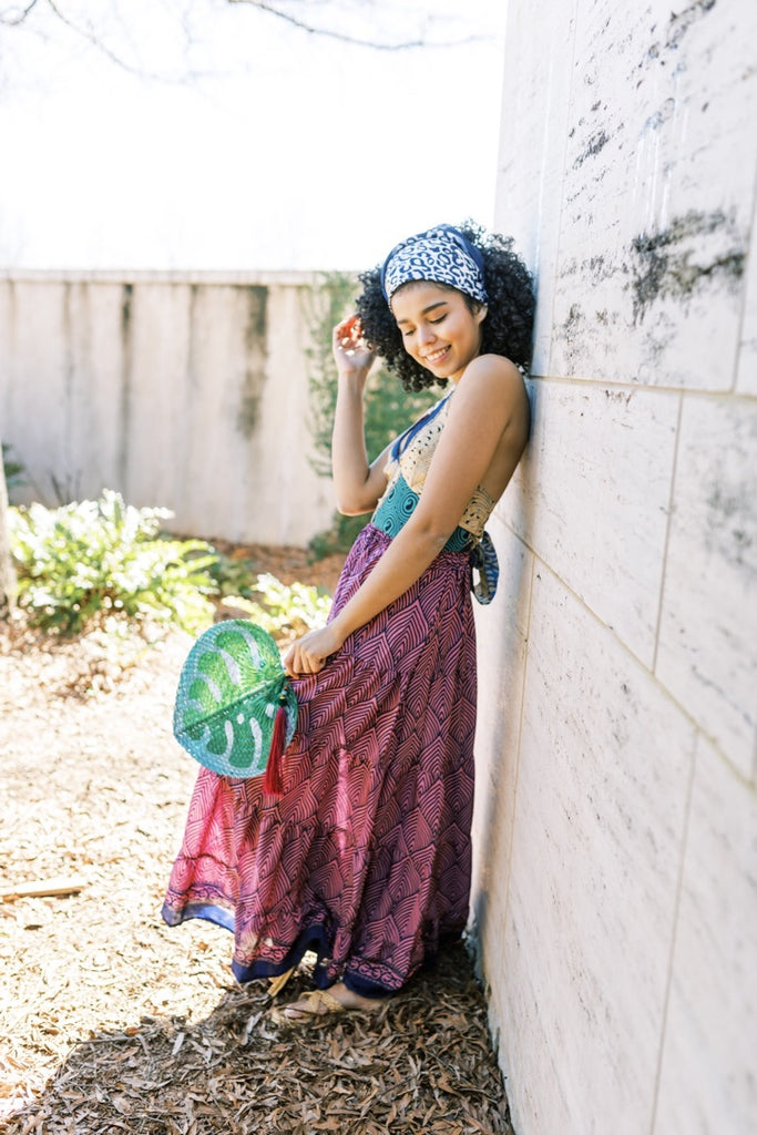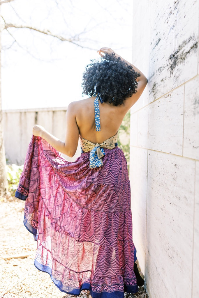 Rich colors in a versatile styled skirt, with a flexible one-size fit, handcrafted in 100% Indian silk.