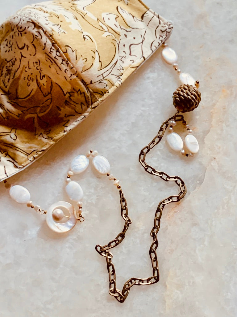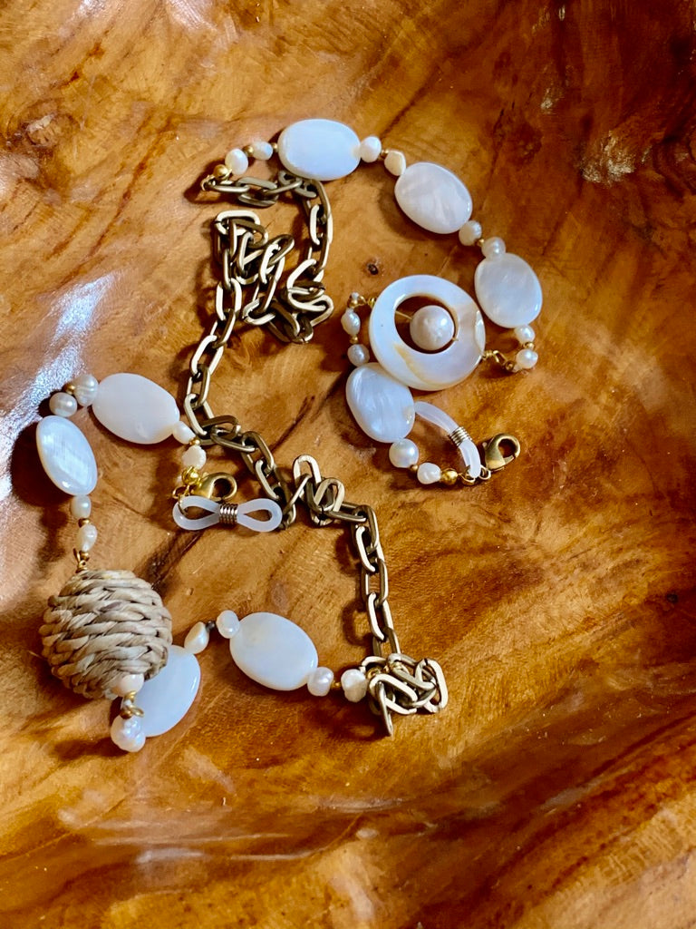 Happy and fun, just like you! This chain can be used 3 ways, as a necklace, as a sunglass holder and as a mask holder!