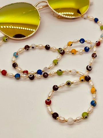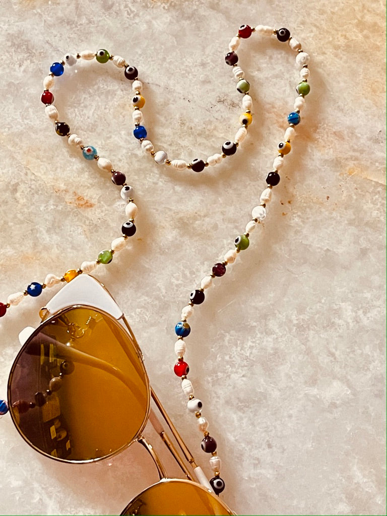 This delicate chain can be used 3 ways, as a necklace, as a sunglass holder and as a mask holder!