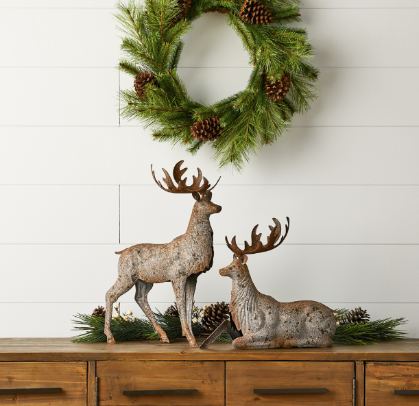 2PC HAMMERED METAL DEER SET