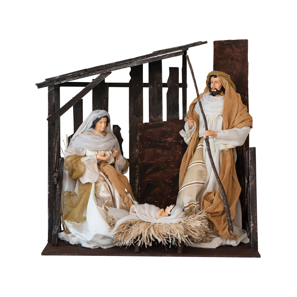 FABRIC HOLY FAMILY WITH STABLE