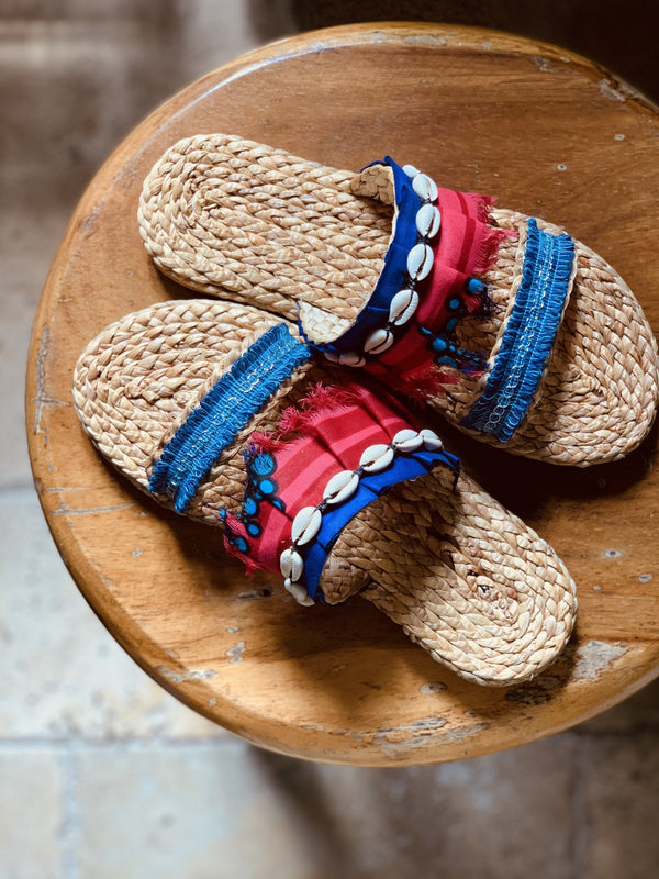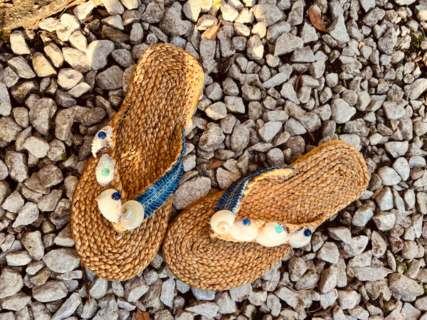 Natural tan, dried seagrass, eco friendly, woven sandals.
