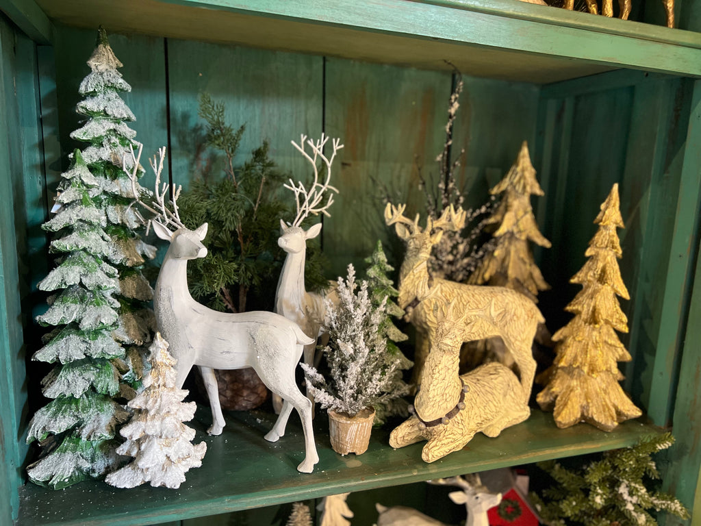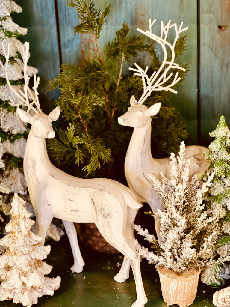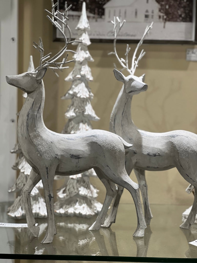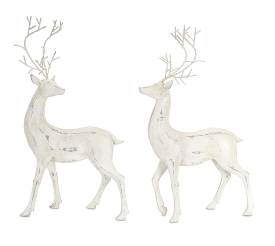 2PC ANTIQUE WHITE DEER SET