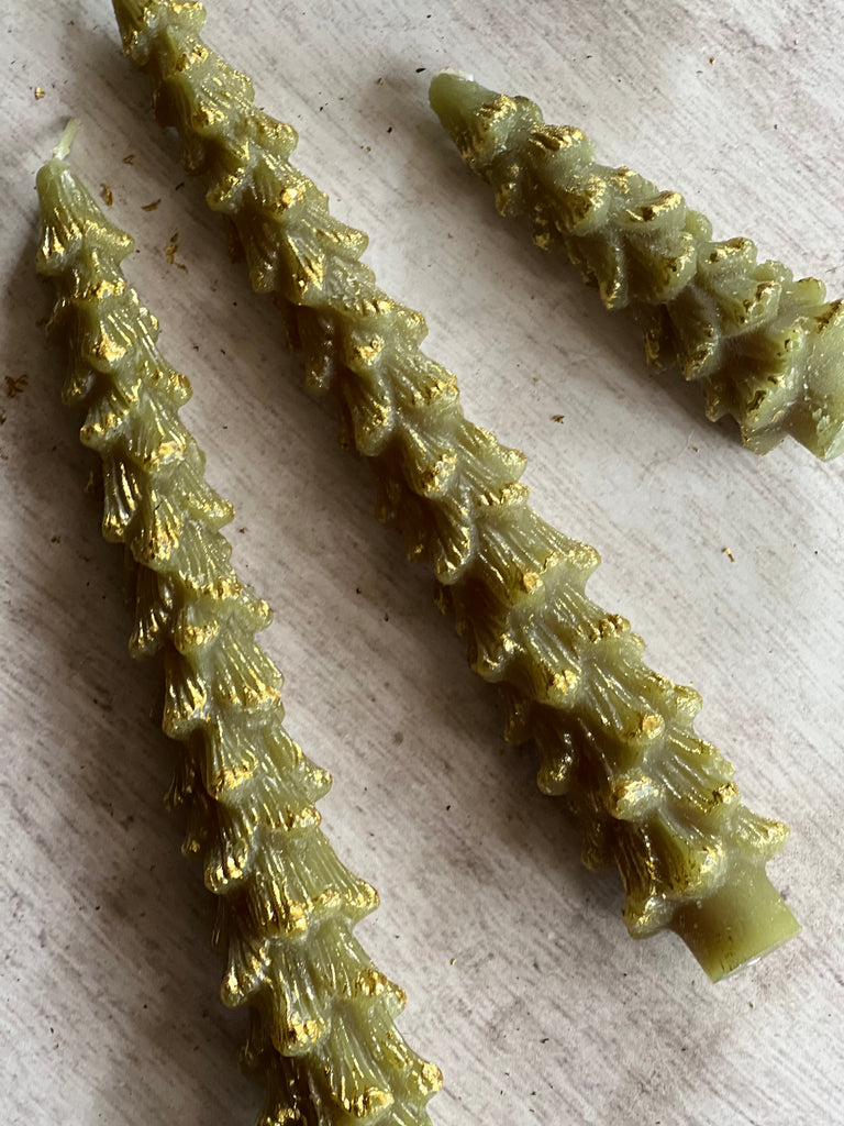 2PC GREEN & GOLD TRIMMED TREE CANDLE SET