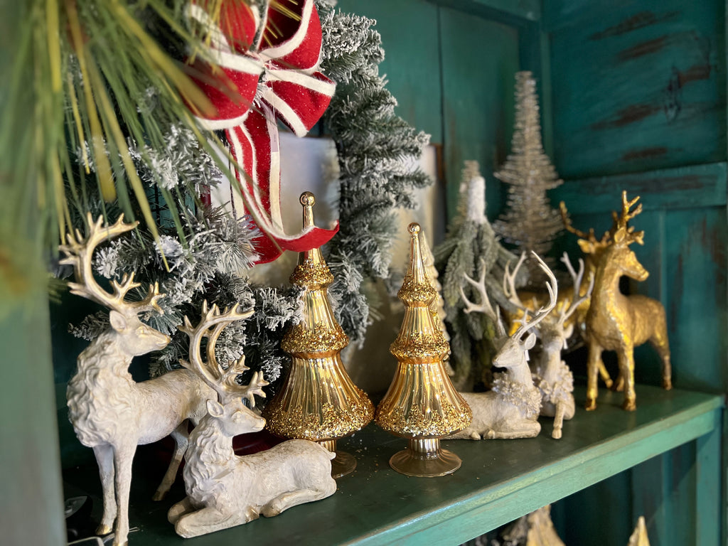 2PC DISTRESSED GOLD DEER SET