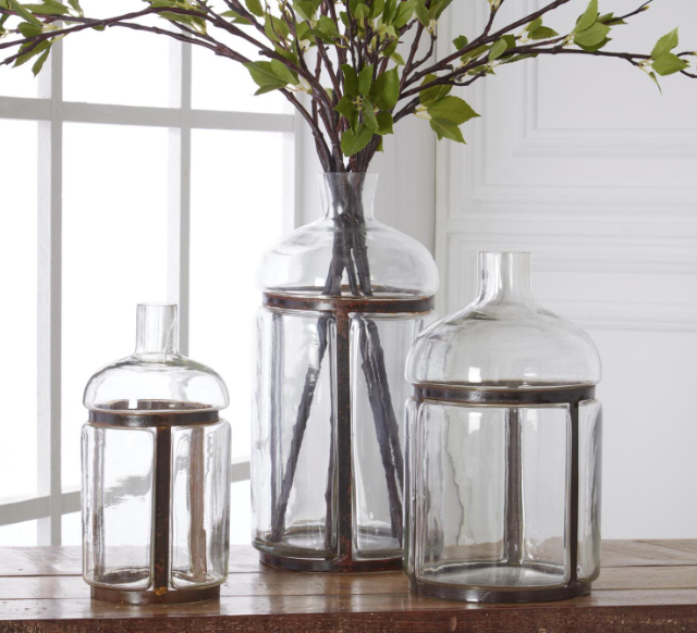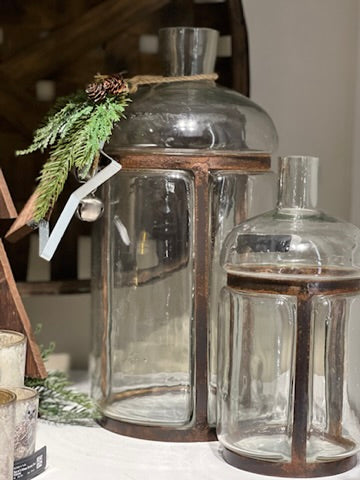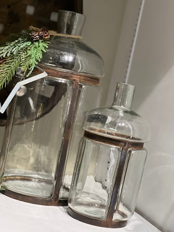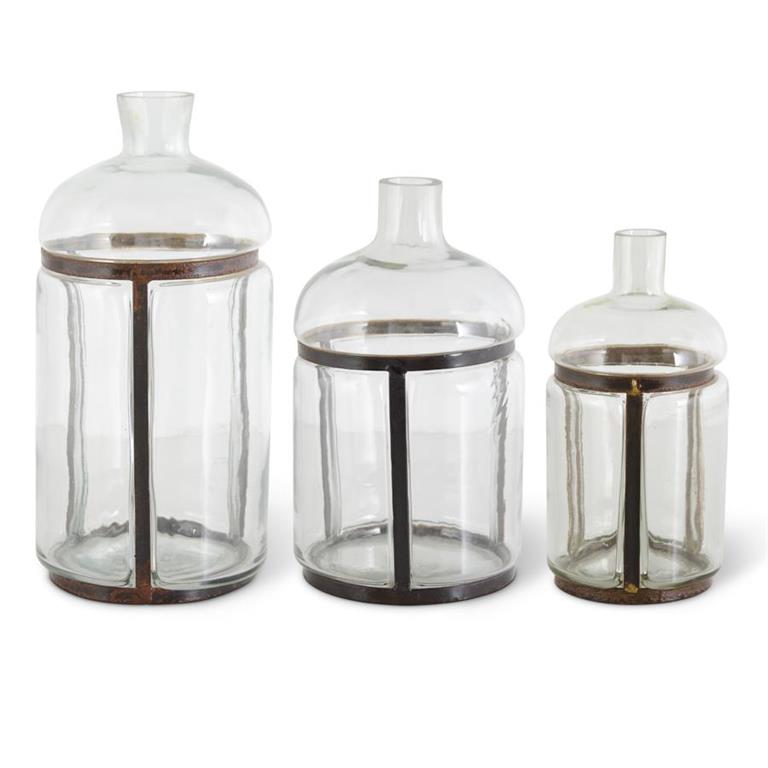 BLOWN GLASS BOTTLES WITH METAL FRAMES