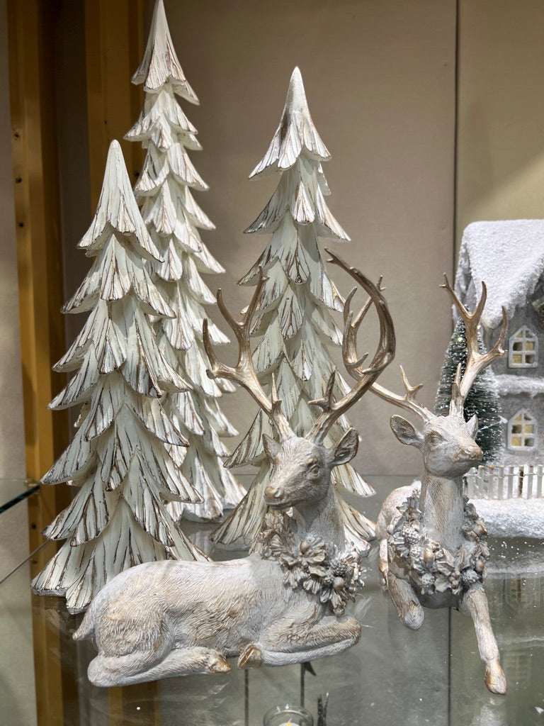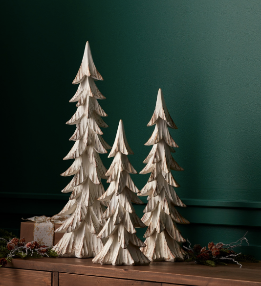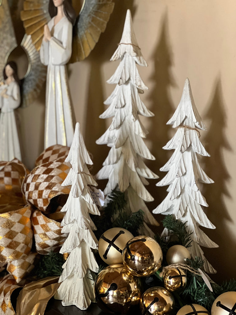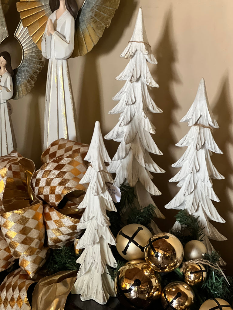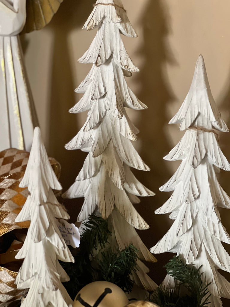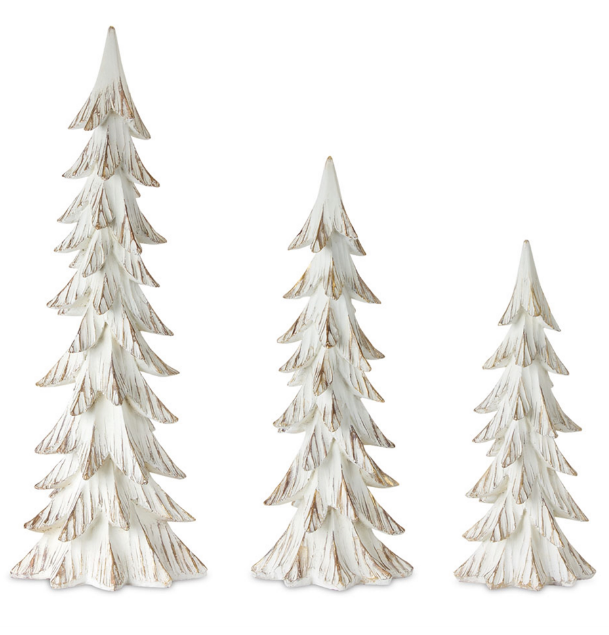 3PC GOLD TRIMMED WHITEWASHED TREE SET