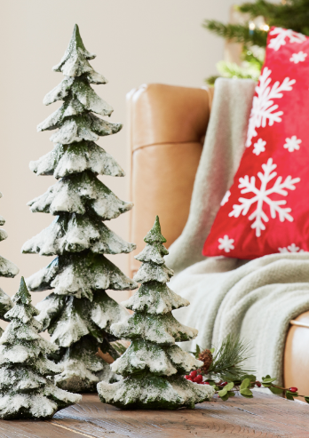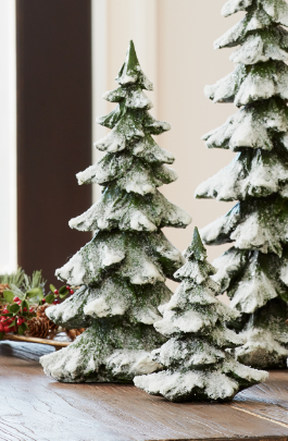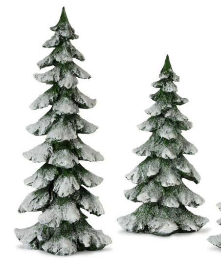 2PC - 6.5" & 9" INCH GREEN SNOWED PINE TREE SET
