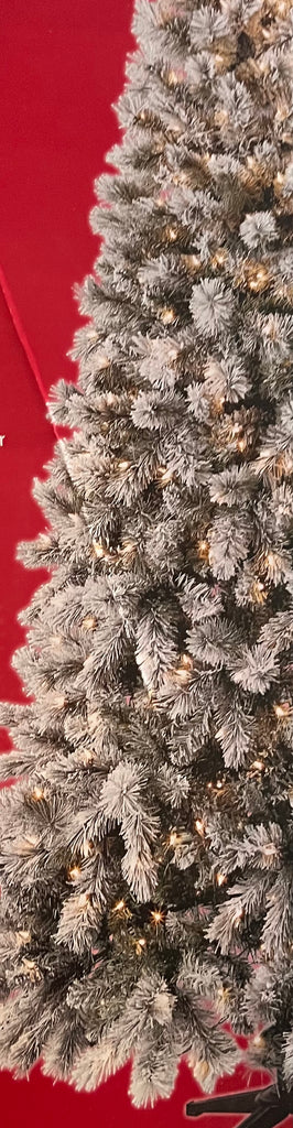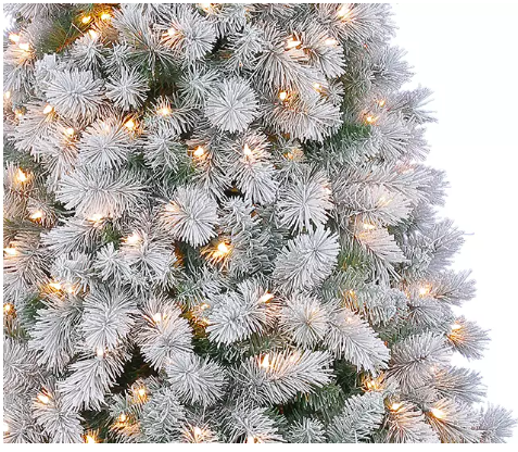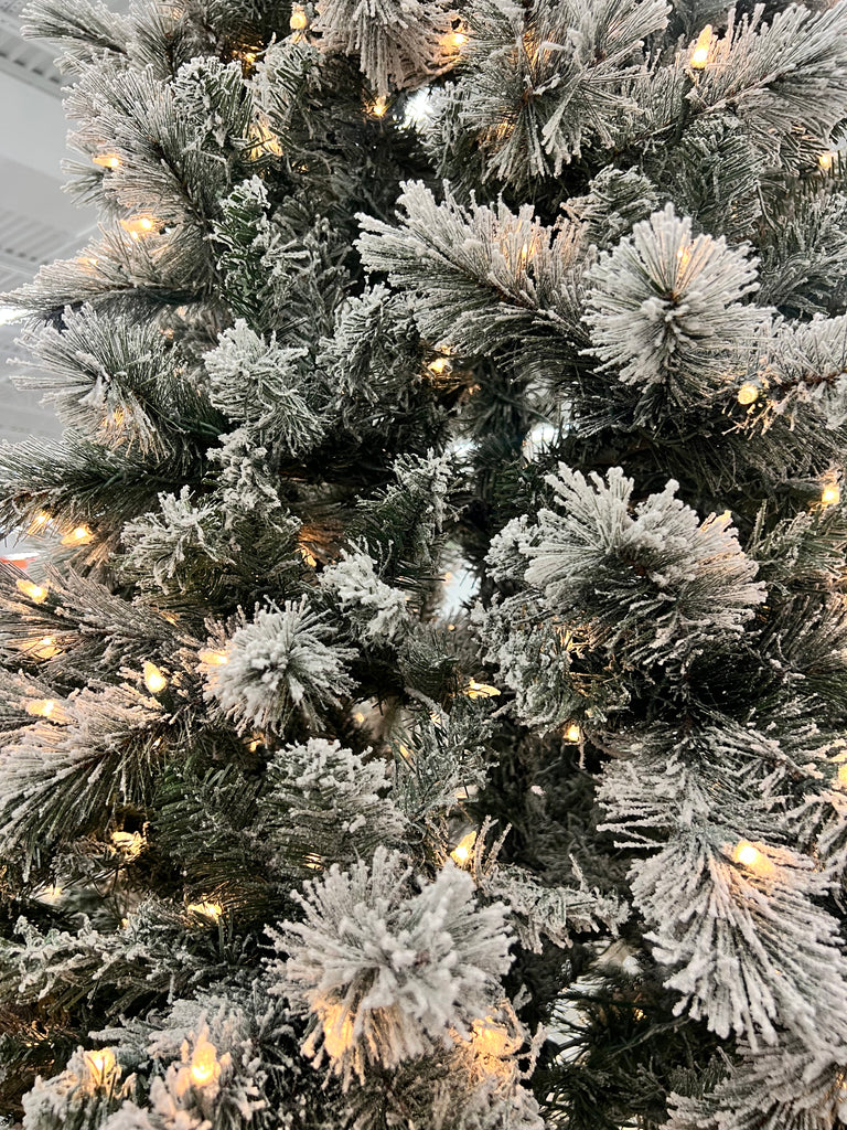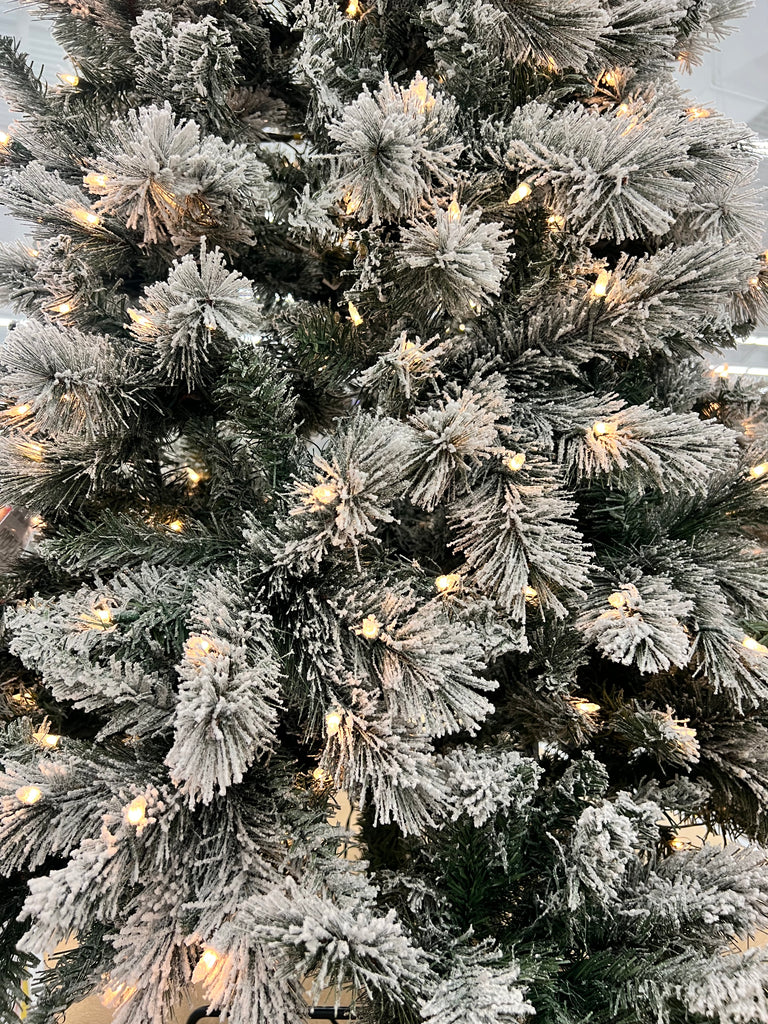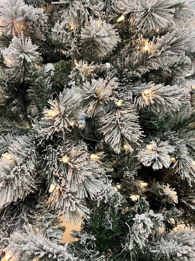 Deck your home for the holidays in a wonderful winter look using this artificial tree! Green branches are accented with flocked snow with clear LED lights, illuminate throughout. This tree is a stunning seasonal addition to a living space or entryway.