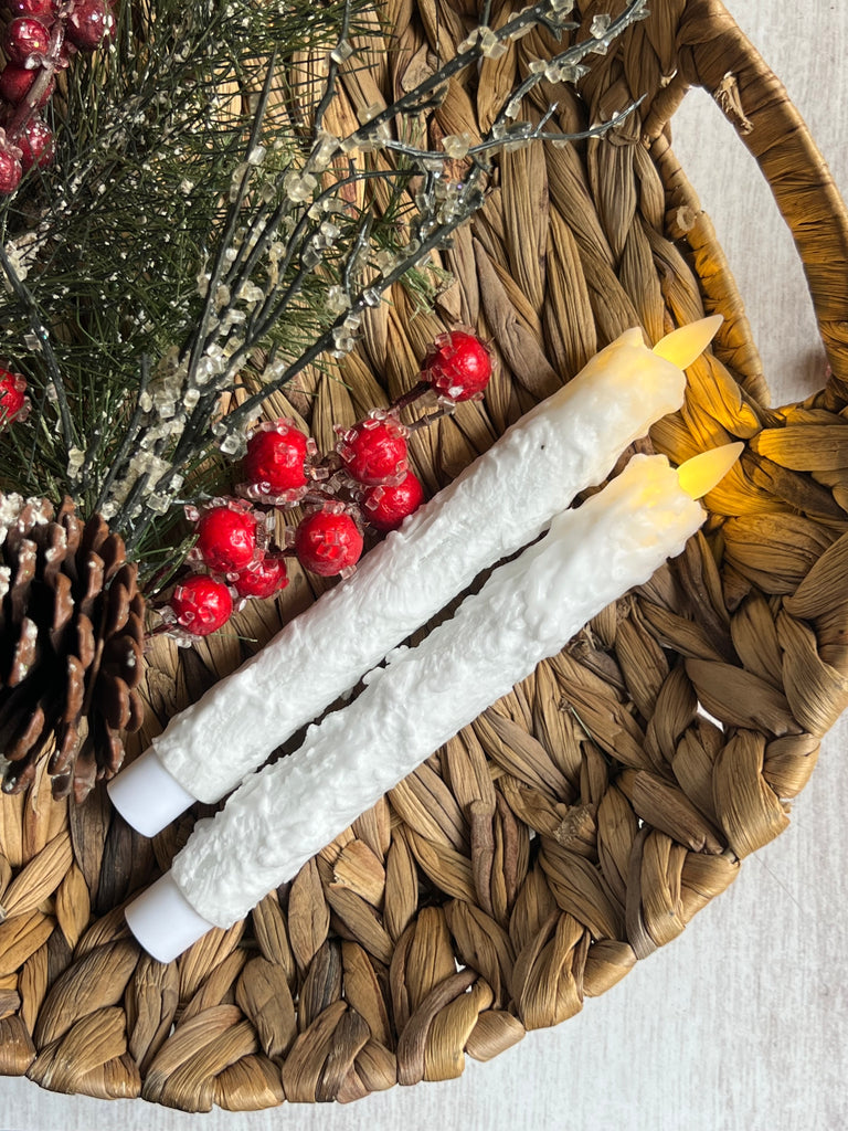 2PC - 7” INCH TAPER LED FLAME TEXTURED CANDLE SET