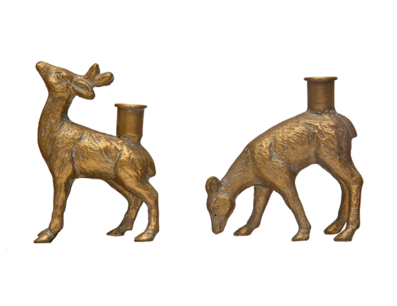 2pc Cast Iron Deer Taper Holder