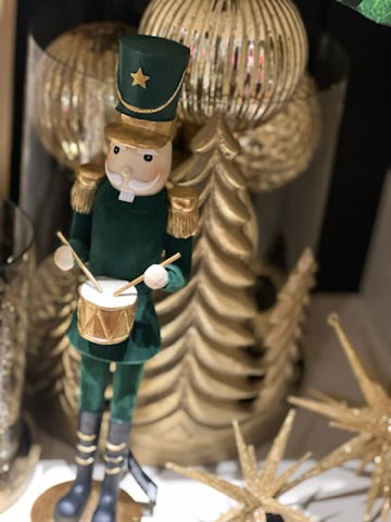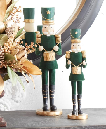 2PC Dark Green Velvet & Gold Nutcrackers with Drums