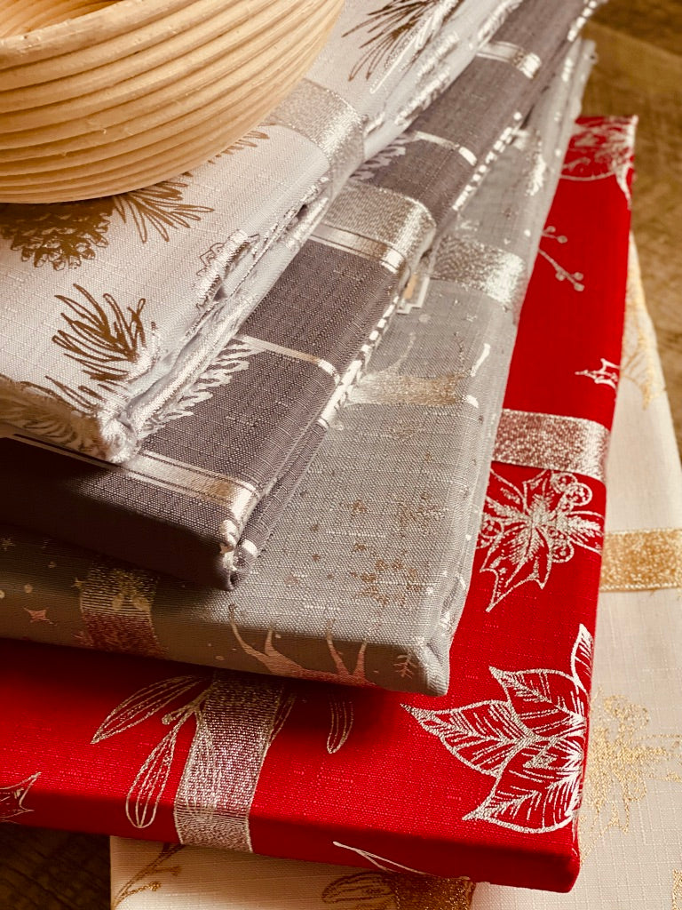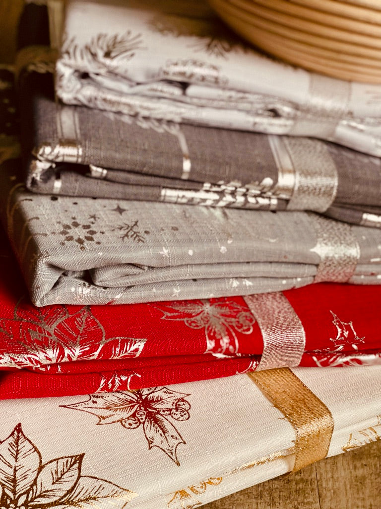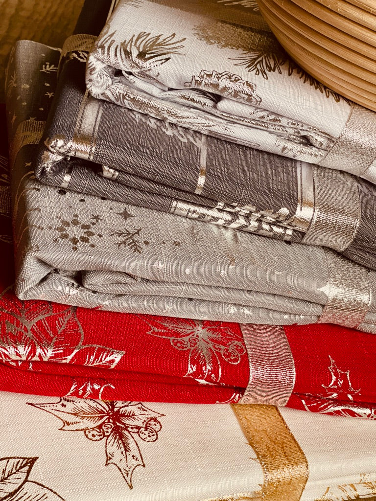 Adorn your home and table with these beautiful, metallic embossed tablecloths.