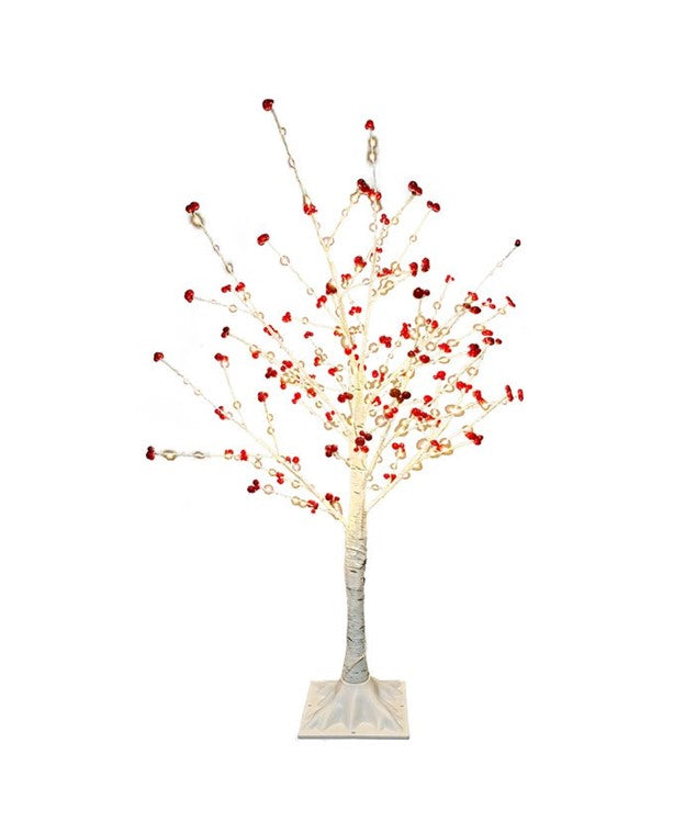 3FT RED BERRIES & BIRCH FAIRY LED TREE