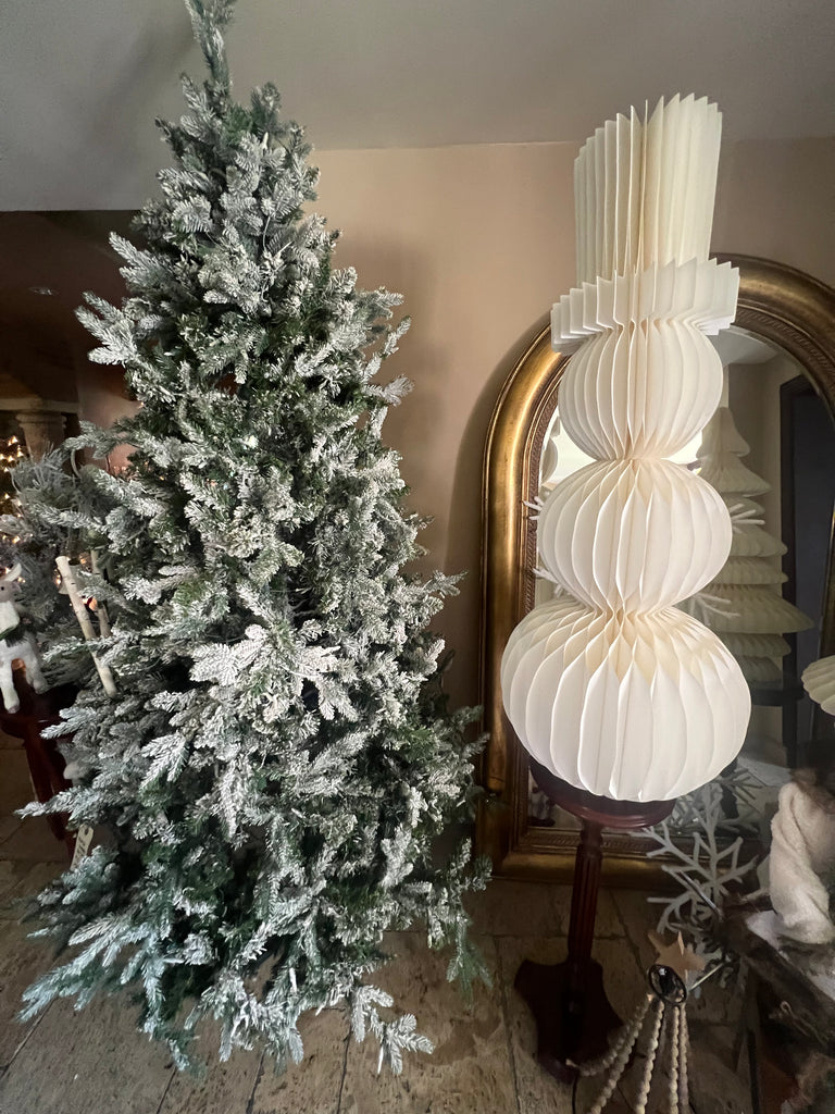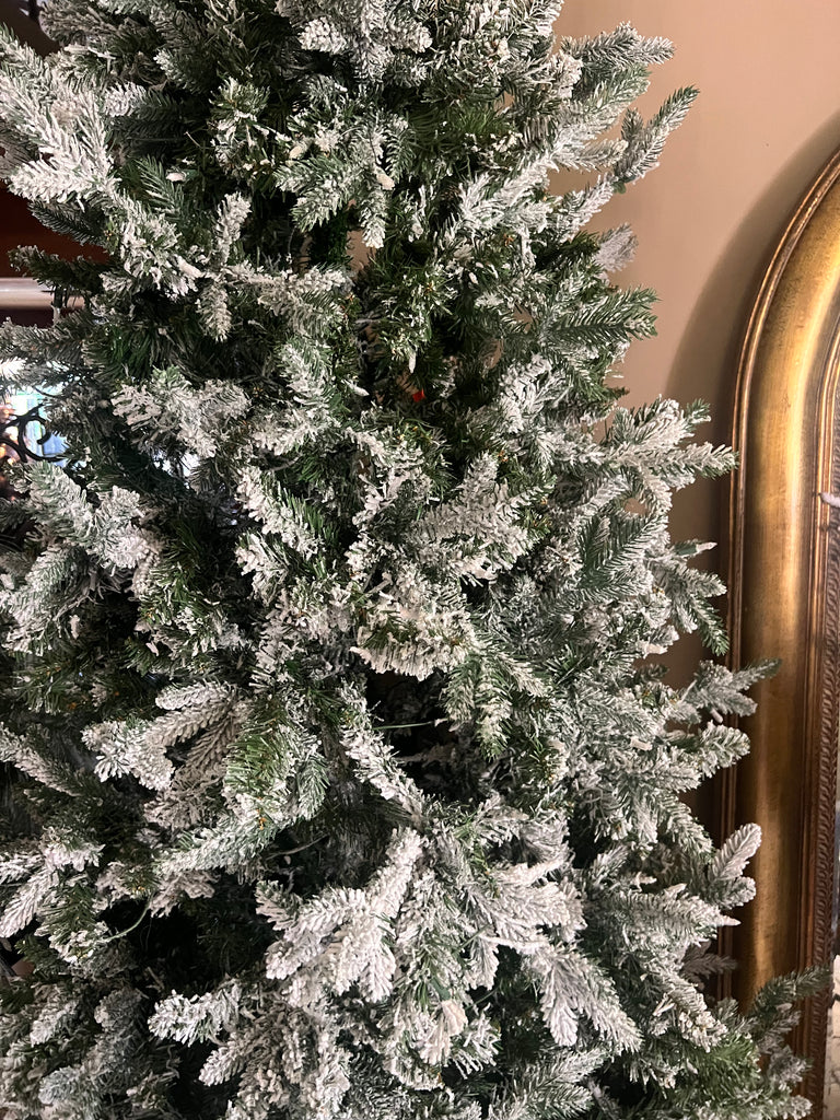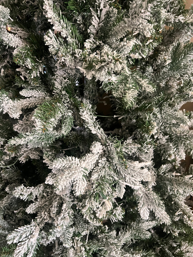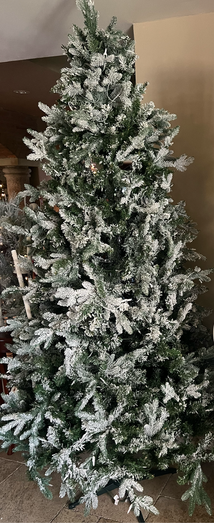 Deck your home for the holidays in a wonderful winter look using this artificial tree! Green branches are accented with flocked snow & 8 way, multi function clear & colored LED lights,  illuminate throughout. This tree is a stunning seasonal addition to a living space or entryway.