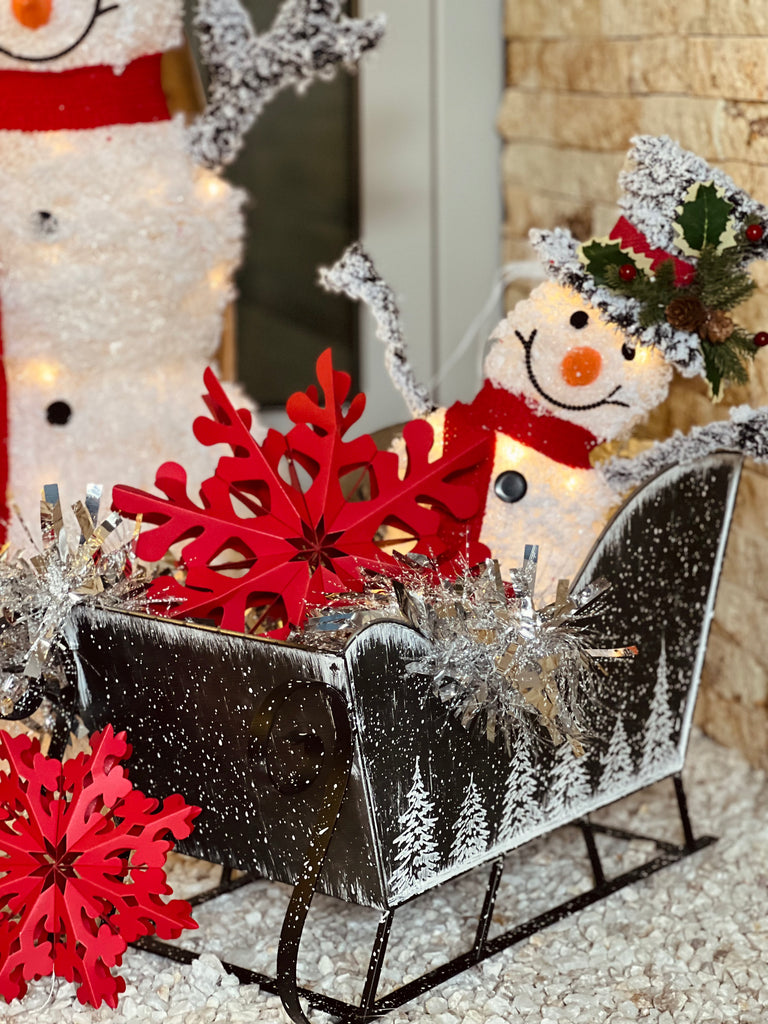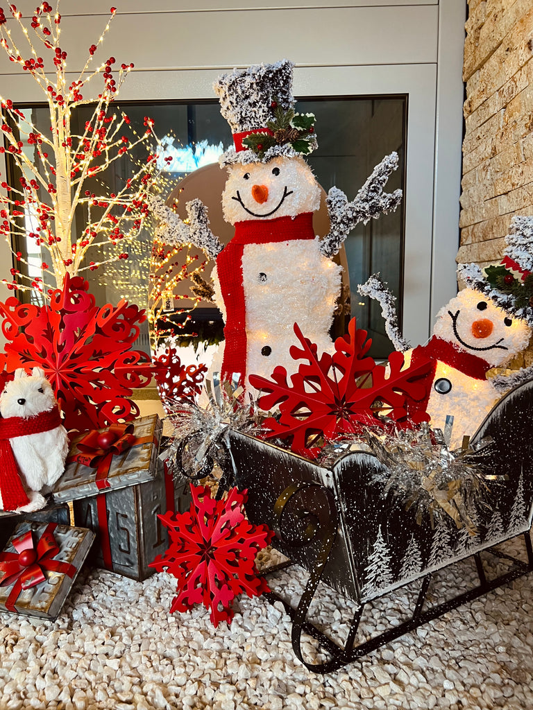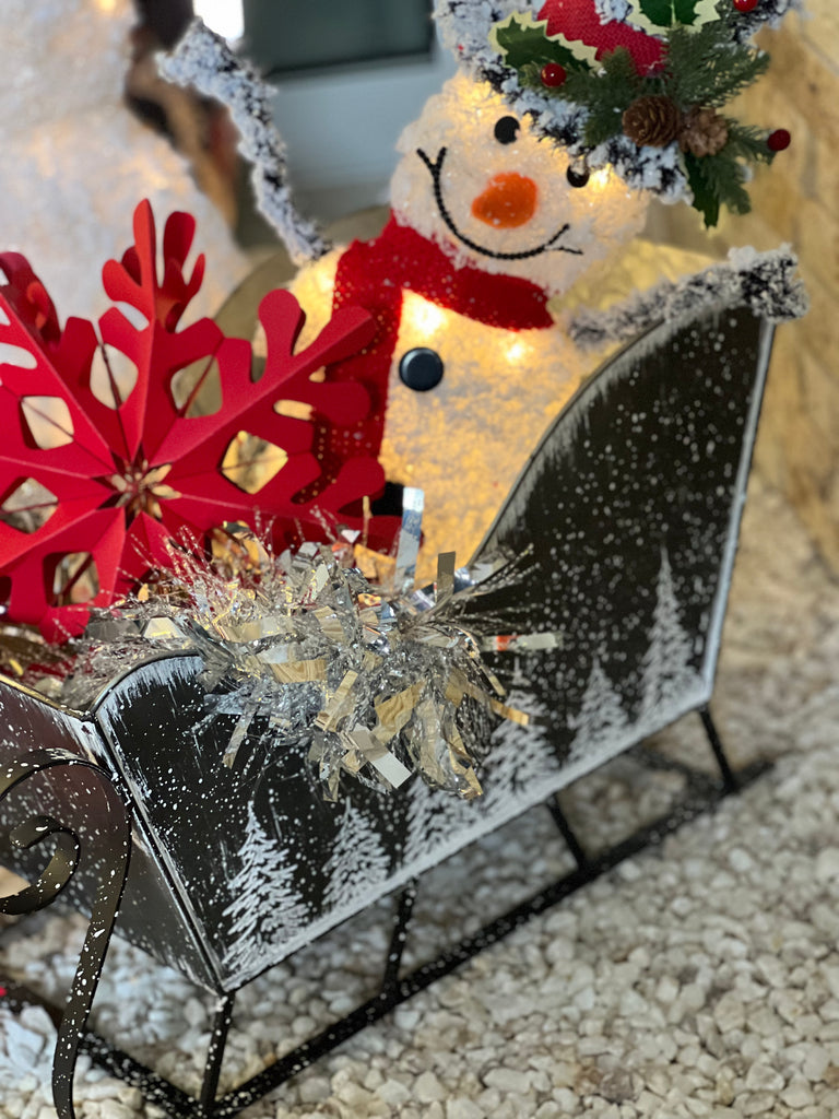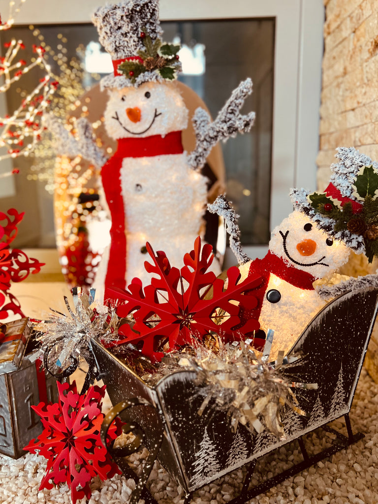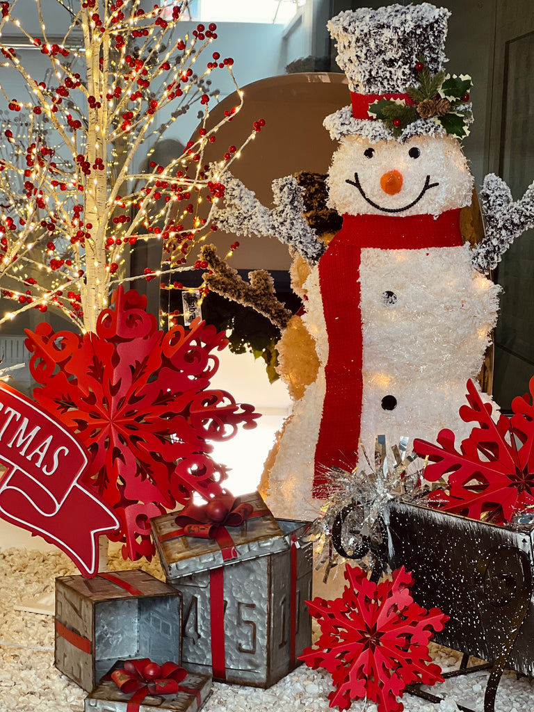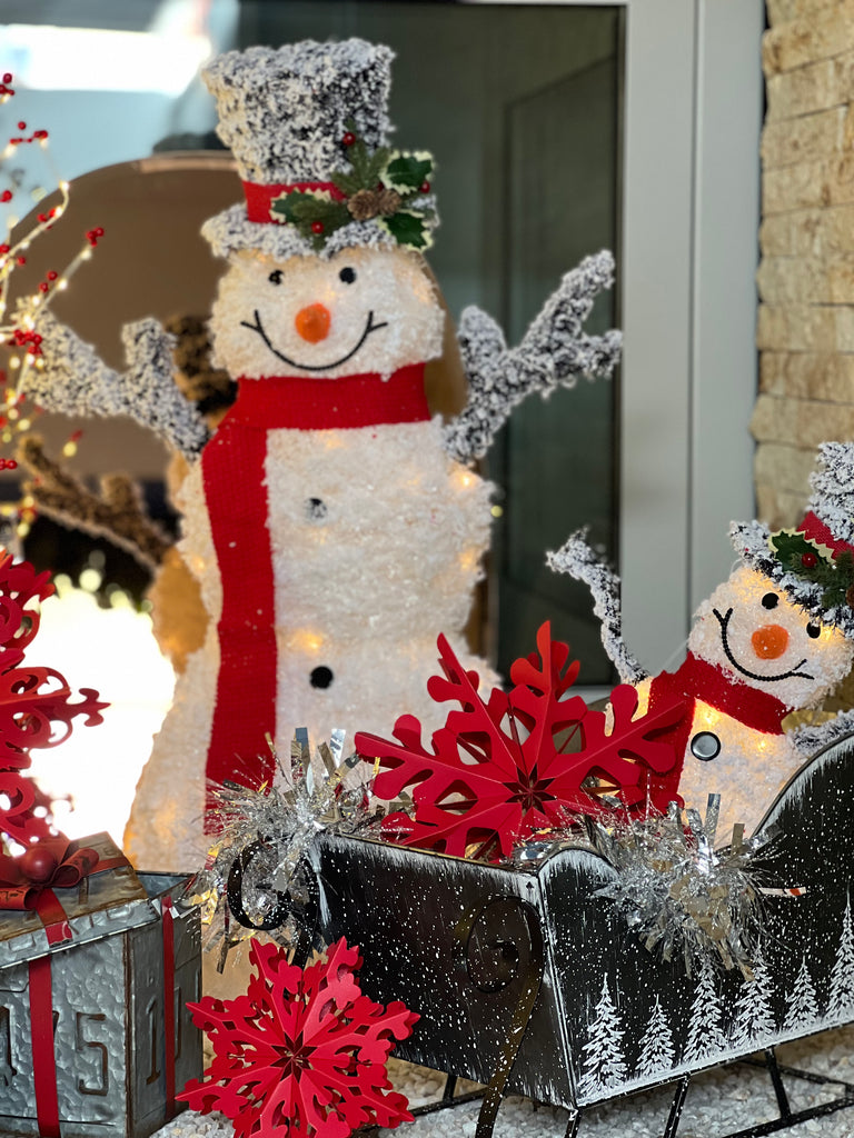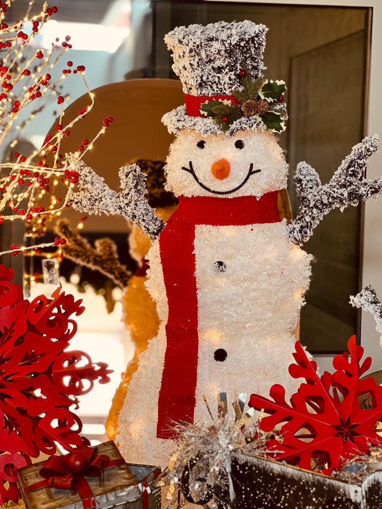 FLOCKED TINSEL LIGHTED SNOWMAN